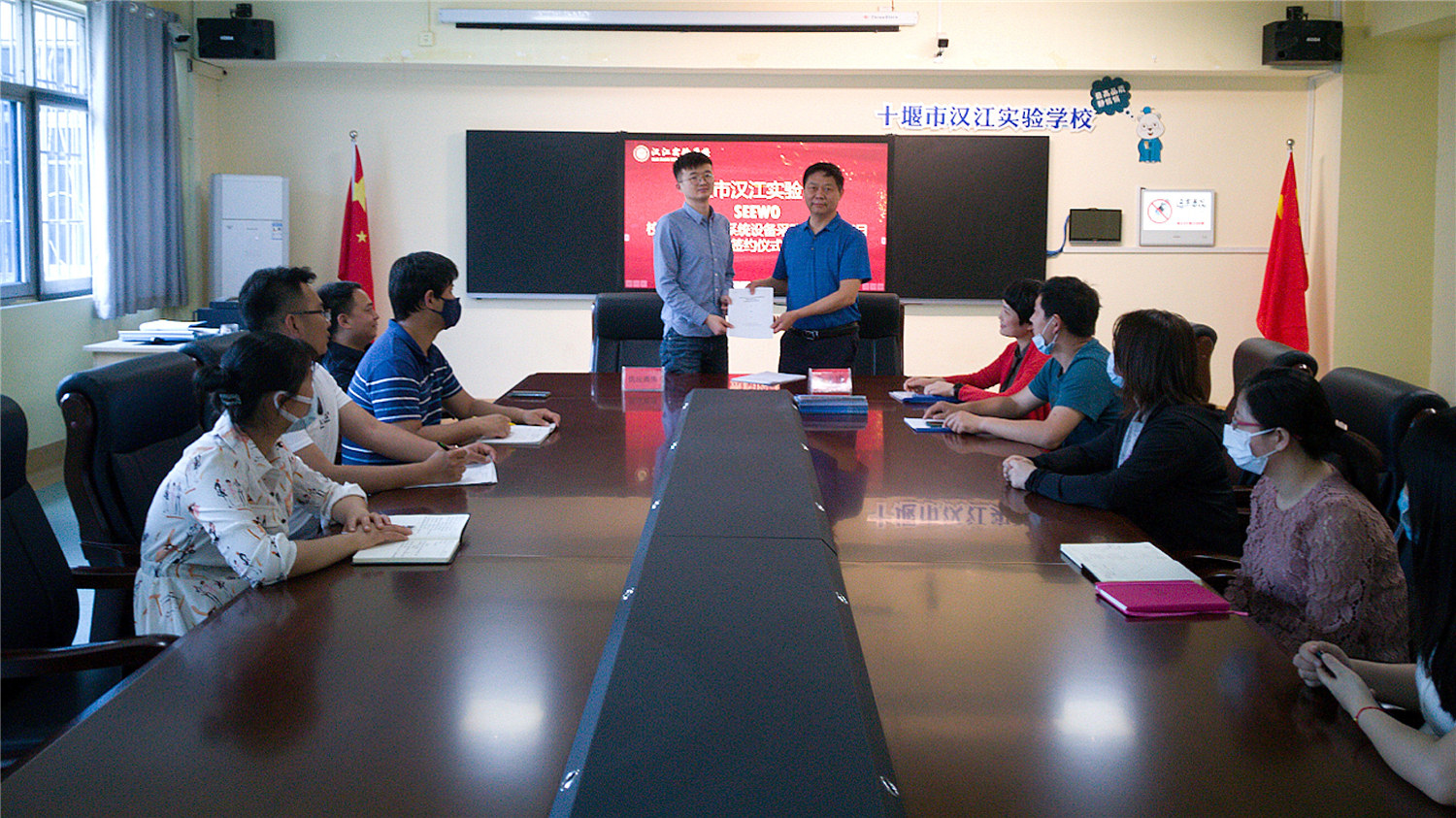 2020年5月26日,我校与广州视睿电子科技有限公司签订智慧教育应用合作协议。双方将在信息技术与教学的融合应用方面展开深度合作,这是汉江实验学校5G智能校园建设的又一个新的里程碑。希沃的加入,使汉江实验学校智能校园建设如虎添翼。