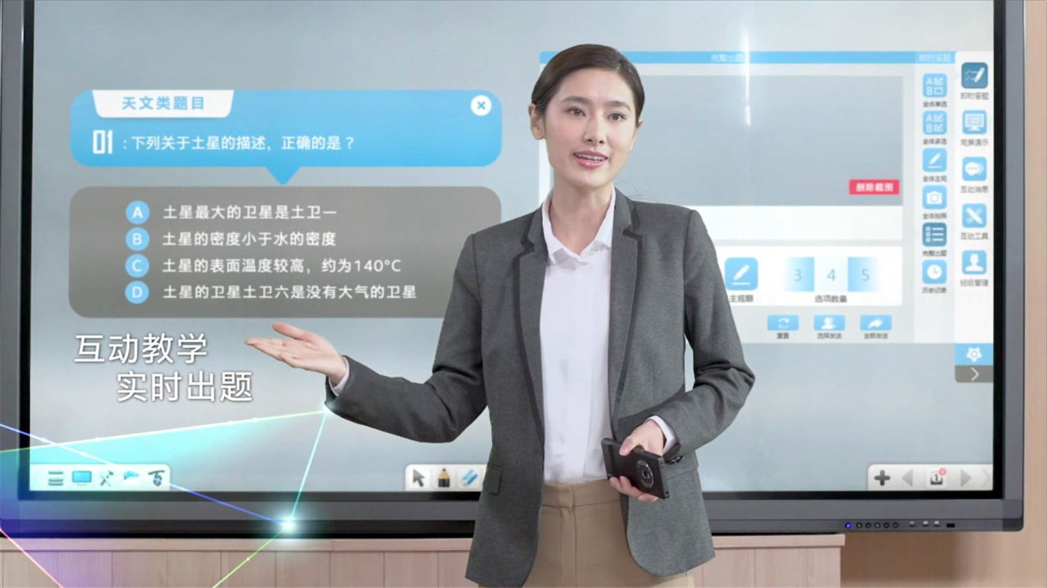 我校采用希沃智慧黑板这款互动教学工具,通过其课件制作、互动授课、在线课堂、微课录制、课件资源库等多项功能,满足线上、线下的信息化教学需求。?教师可以通过即时互动反馈,动态调整教学计划,提高课堂效率;精准掌握学生学习进度和知识掌握情况,实现分层教学、以学定教;及时掌握学生的学习情况,精准评价,定向辅导。