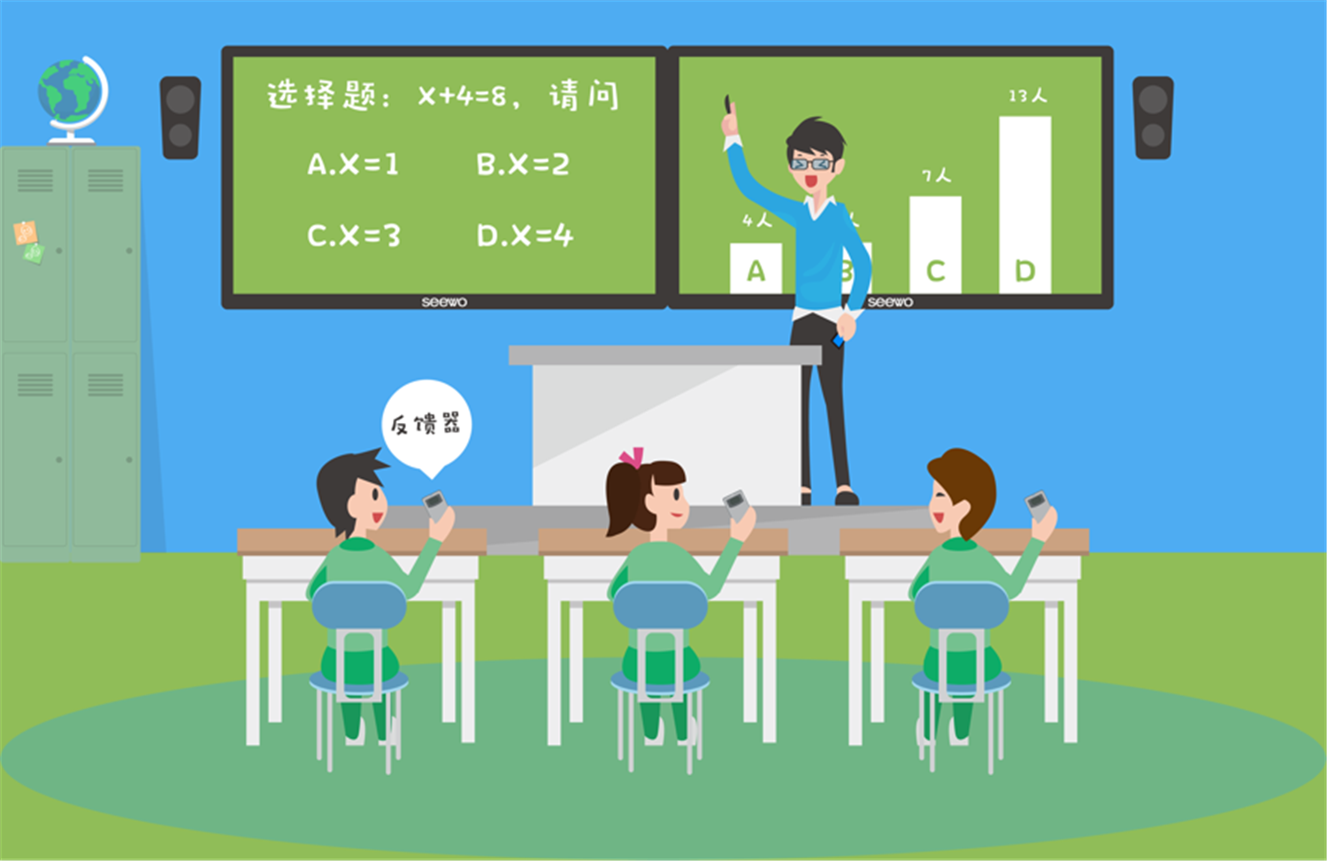 希沃易课堂解决方案,将实现我校智慧课堂的常态化,通过覆盖学生课前、课中、课后全流程学习场景,构建个性化智慧学习环境,用教育云服务及应用改变传统教学方式,打造学生、教师、家长全员参与,互动生成的智慧课堂,真正提升学生学习成效、帮助学生全面成长。
