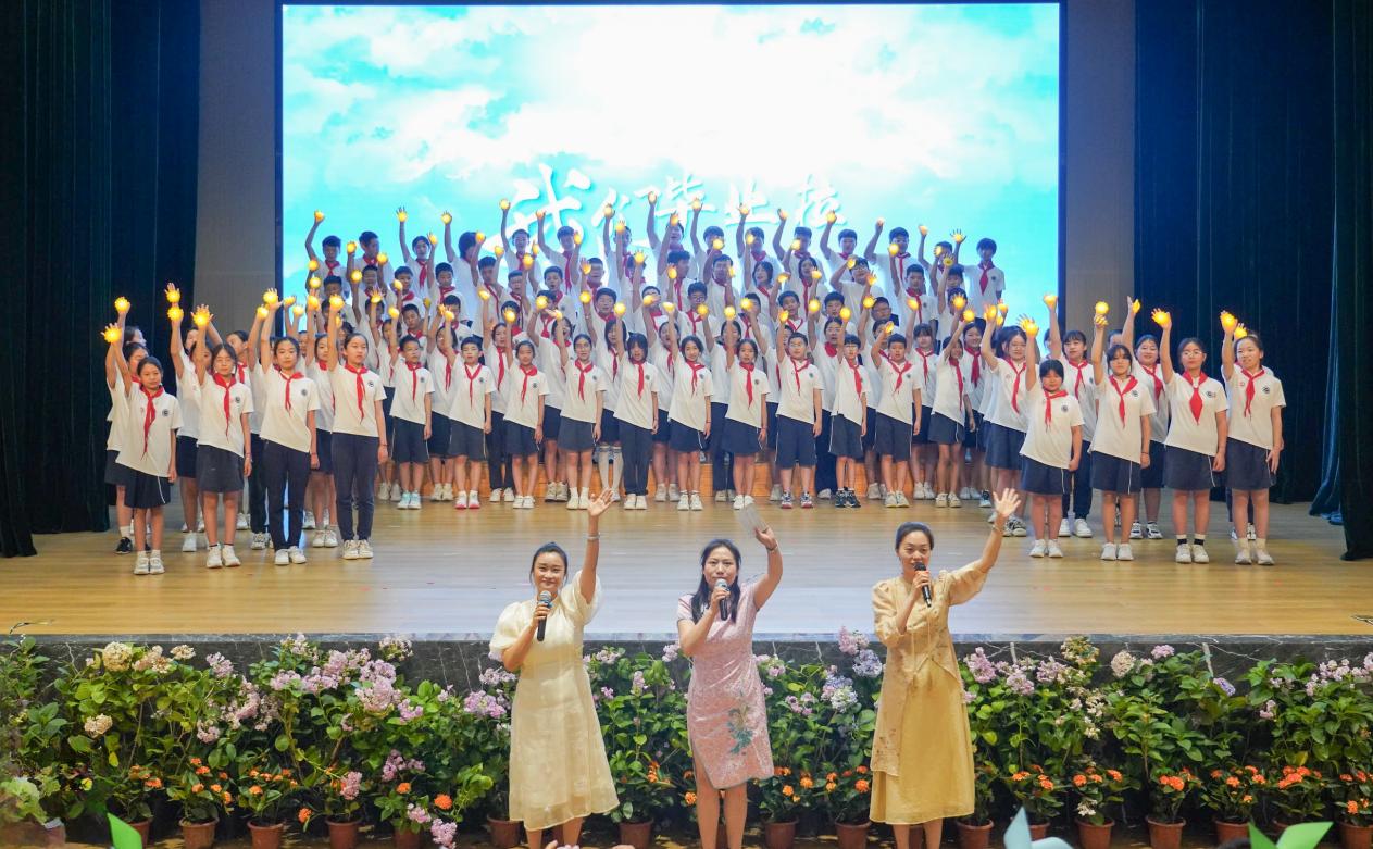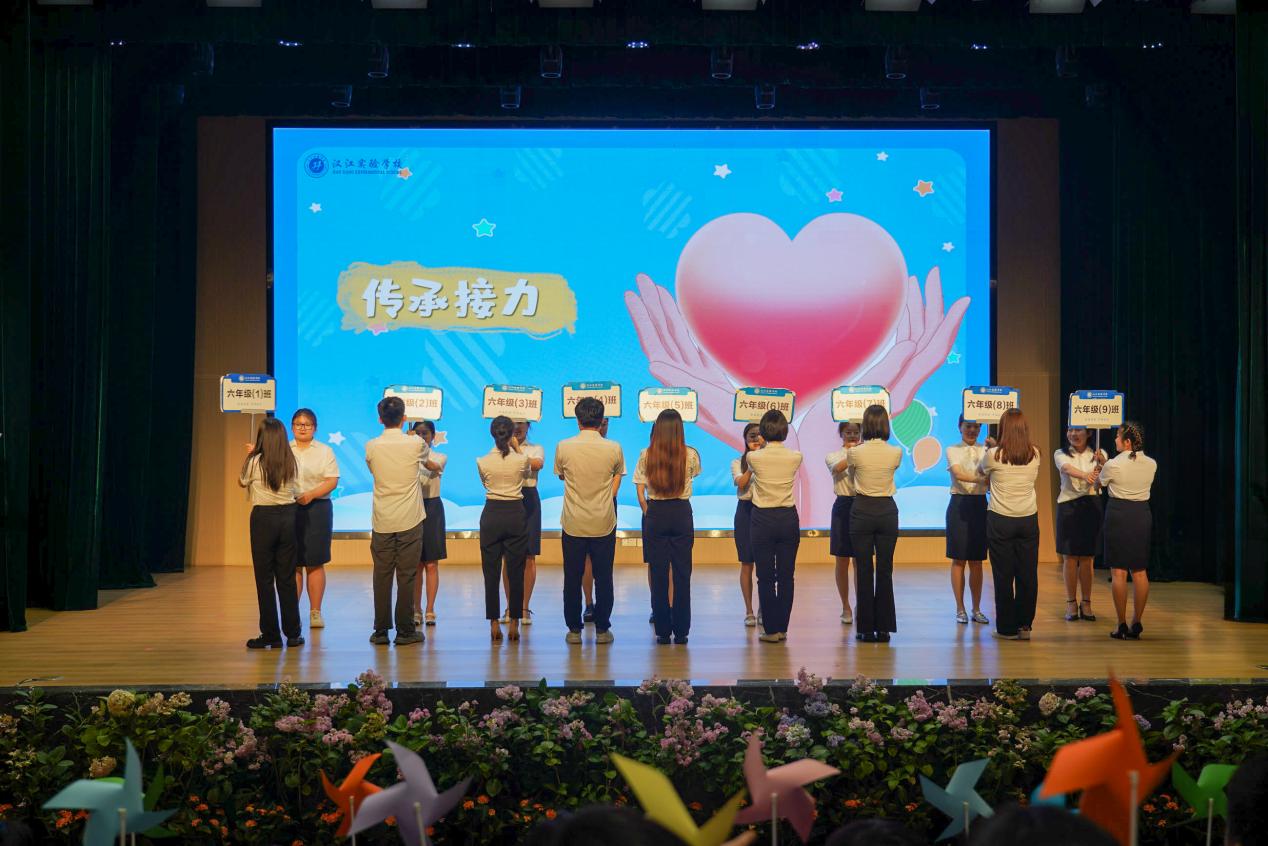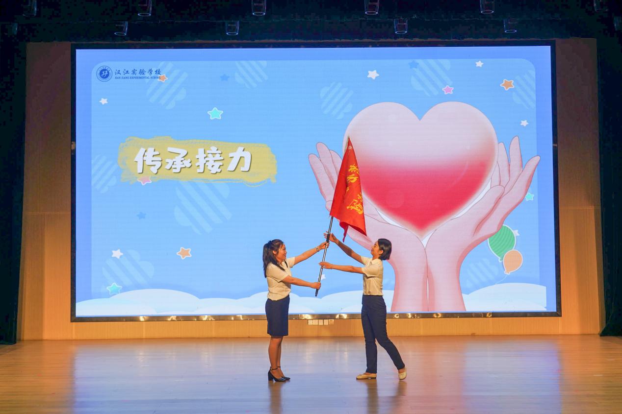 俞平老师将手中的红旗郑重交到五年级年级主任李豪然老师手中,这对新一届六年级教师团队而言,不仅是任务的传递,更是爱和责任的传承。