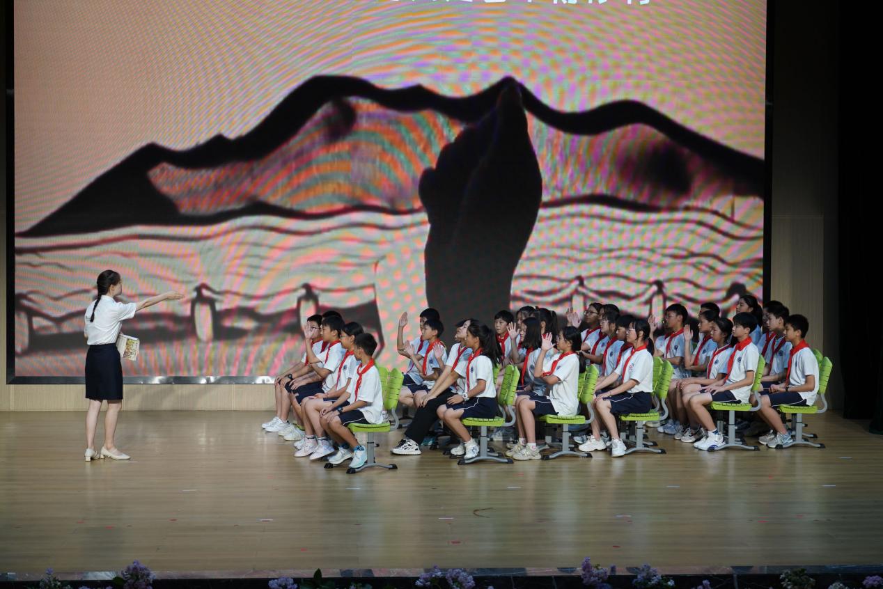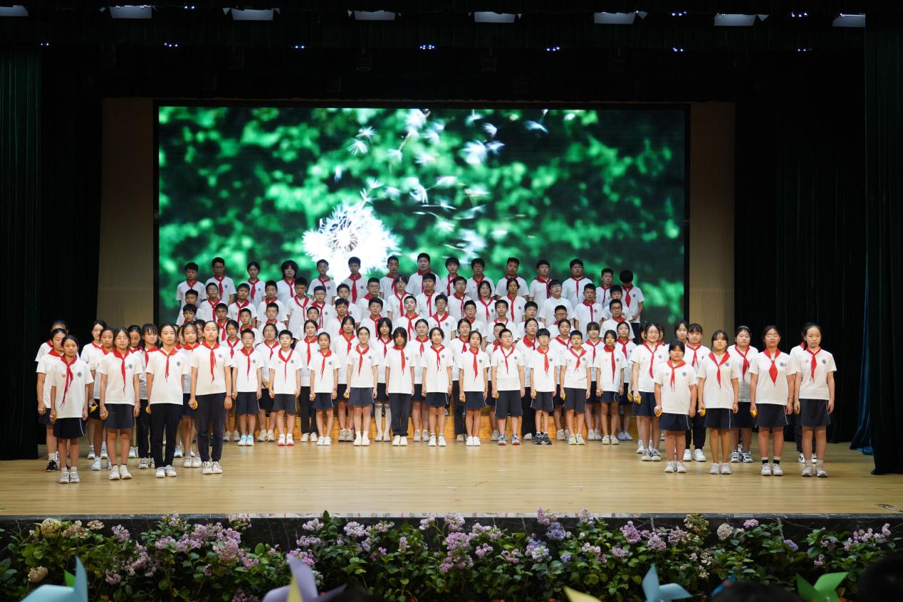 国歌嘹亮,国旗冉冉,全体师生行注目礼高唱国歌。暖场视频《时光森林》见证了同学们从青涩的小小孩童到踌躇满志的少年成长。每一张纯真的笑脸,都成为同学们心中最珍贵的回忆。
