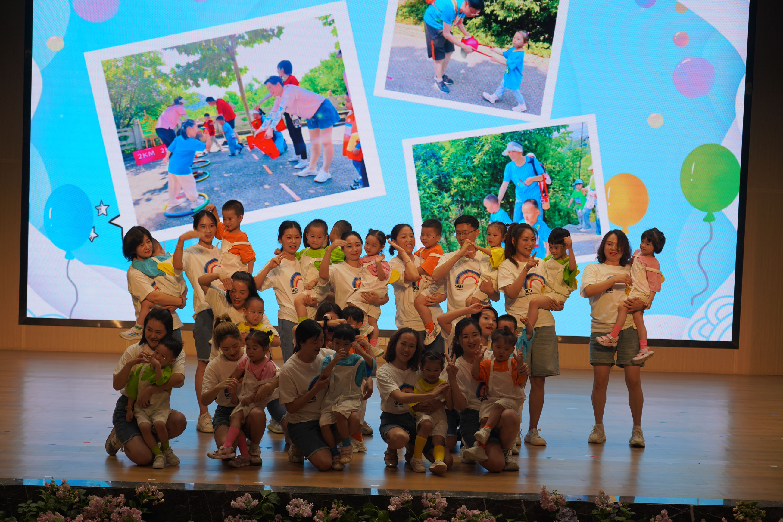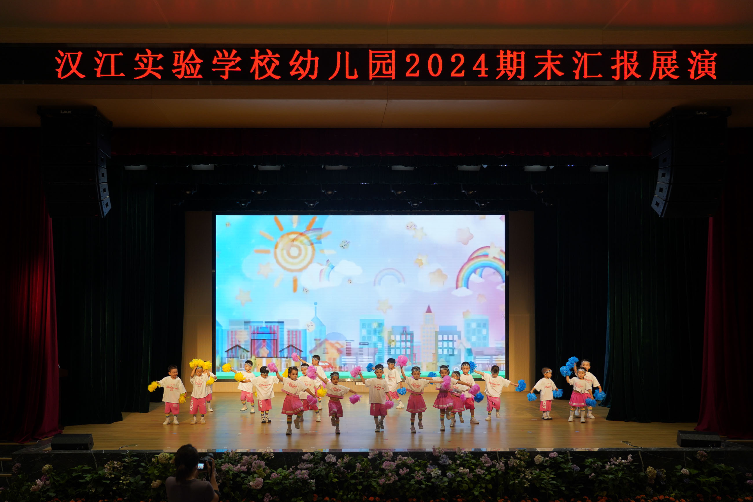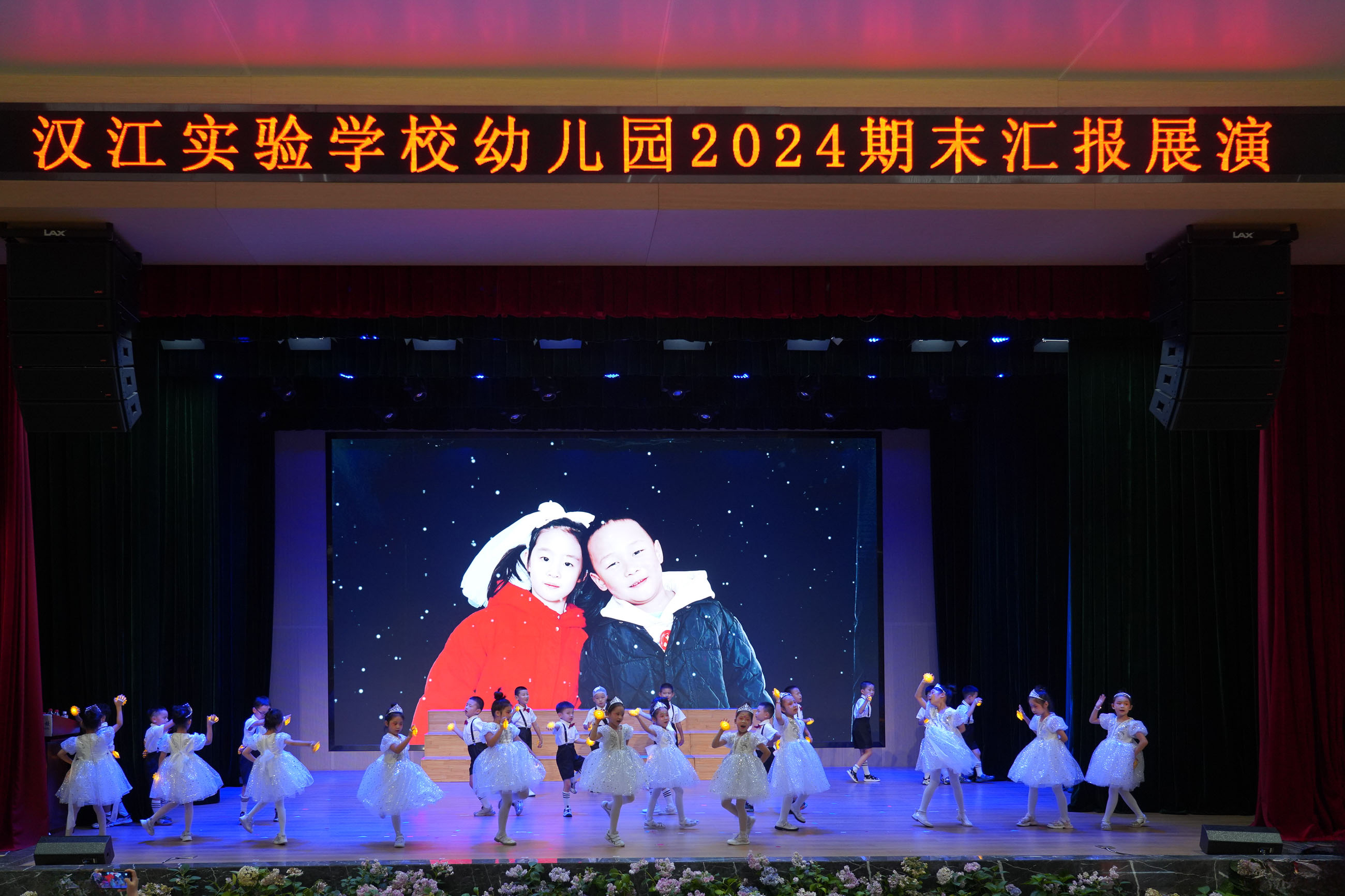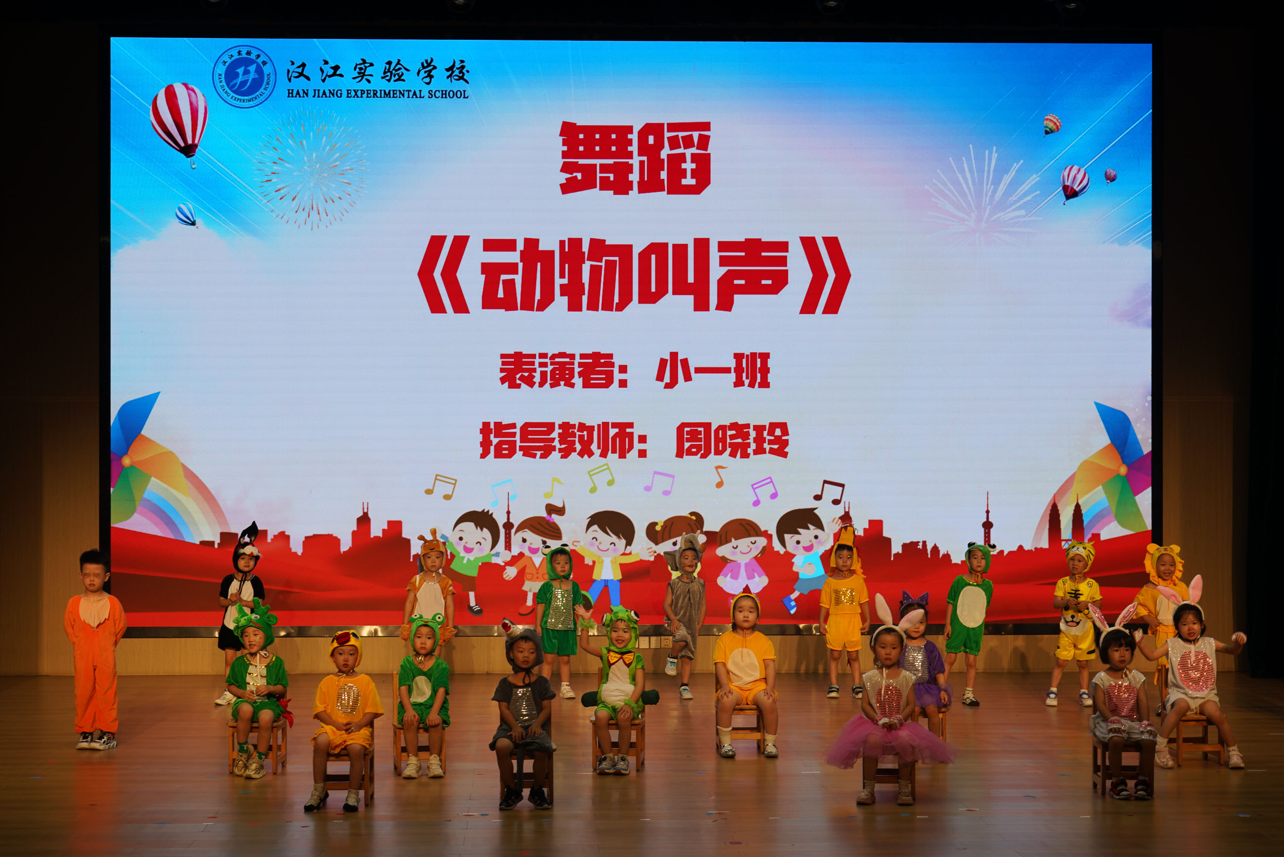 汉江幼儿园的老师们带来舞蹈《扑了个满怀》;活泼可爱的大一班小朋友们带来的篮球操表演《中国梦、篮球梦》;大二班小朋友带来的英语童话剧《拔萝卜》;中二班的孩子们啦啦操《向快乐出发》充满着阳光、活力、自信;小一班的宝贝们带着热情与创意,带来了一场别开生面的舞蹈《小动物叫声》;领袖二班舞蹈《夏日离别》,洋溢着对未知世界的好奇与勇气。