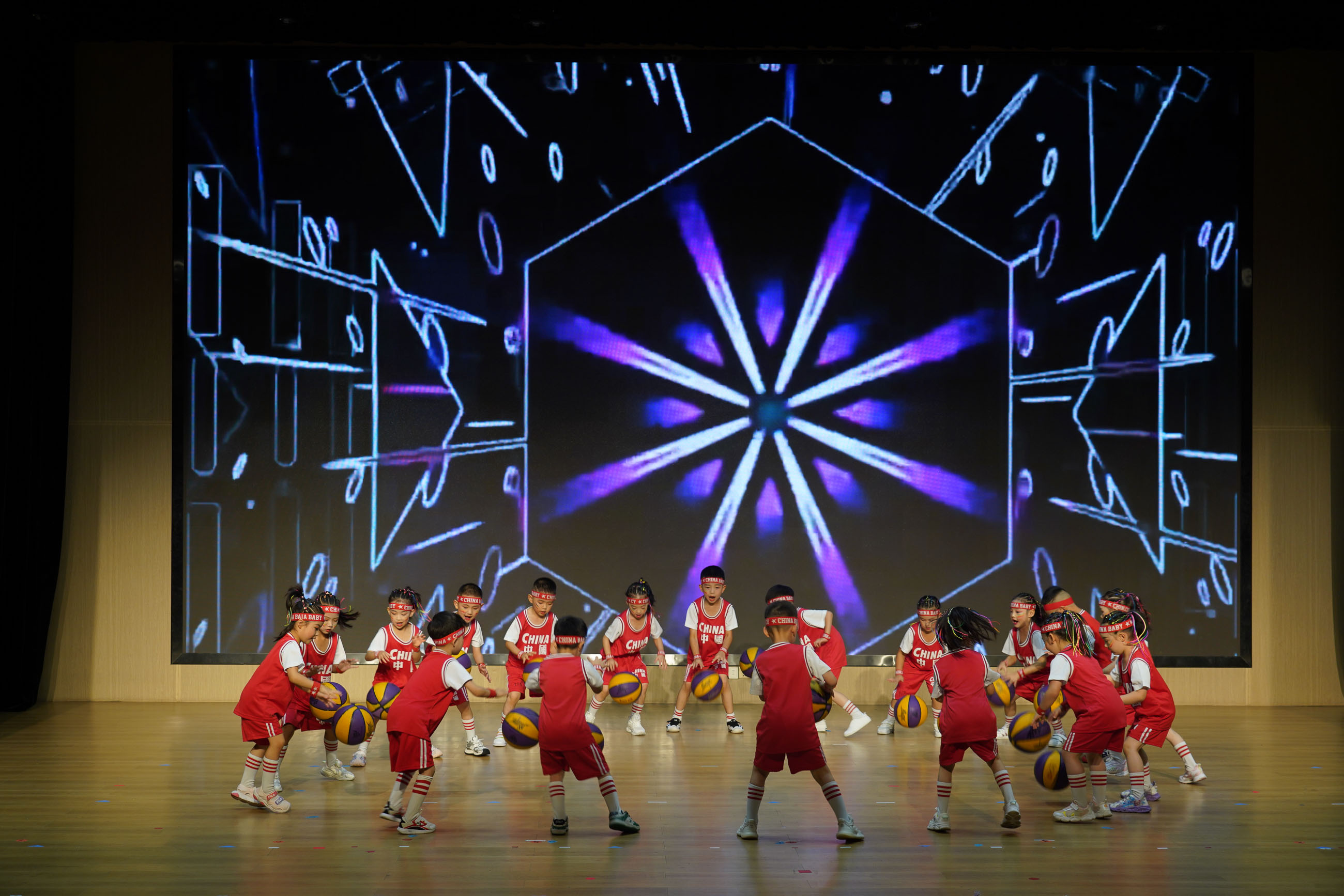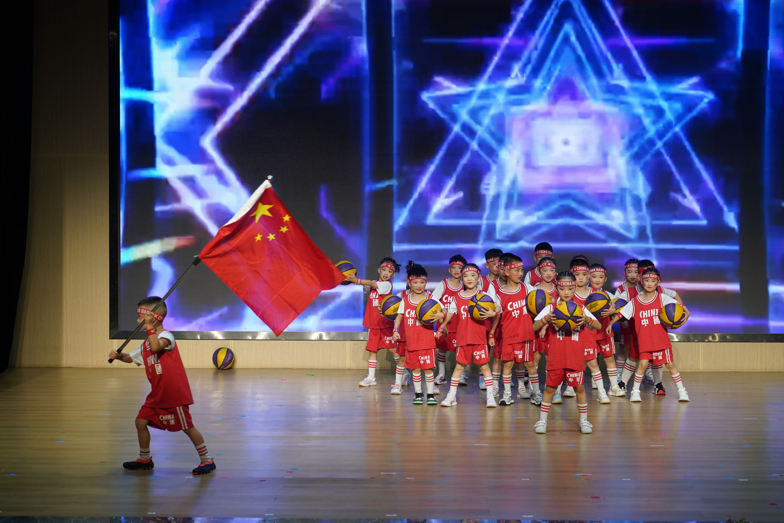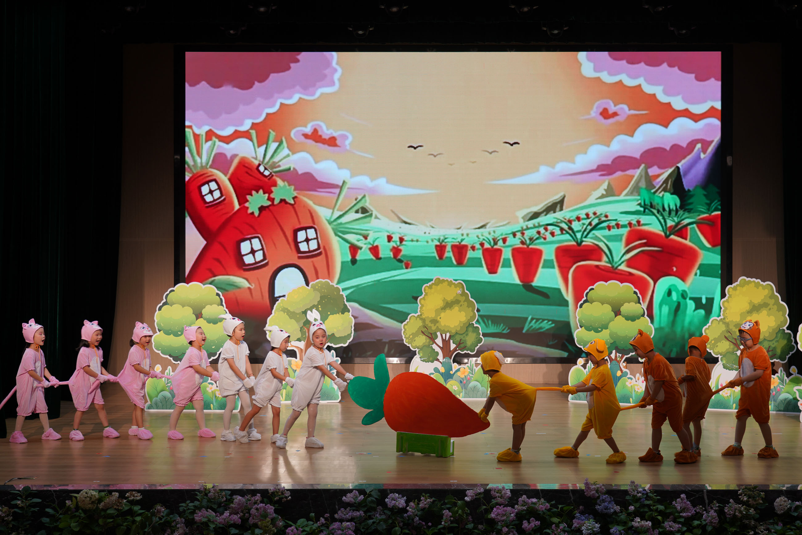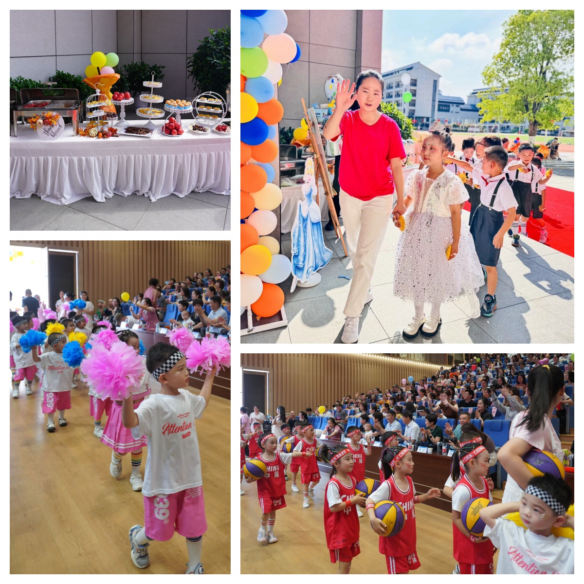 汉江幼儿园的老师们带来舞蹈《扑了个满怀》;活泼可爱的大一班小朋友们带来的篮球操表演《中国梦、篮球梦》;大二班小朋友带来的英语童话剧《拔萝卜》;中二班的孩子们啦啦操《向快乐出发》充满着阳光、活力、自信;小一班的宝贝们带着热情与创意,带来了一场别开生面的舞蹈《小动物叫声》;领袖二班舞蹈《夏日离别》,洋溢着对未知世界的好奇与勇气。
