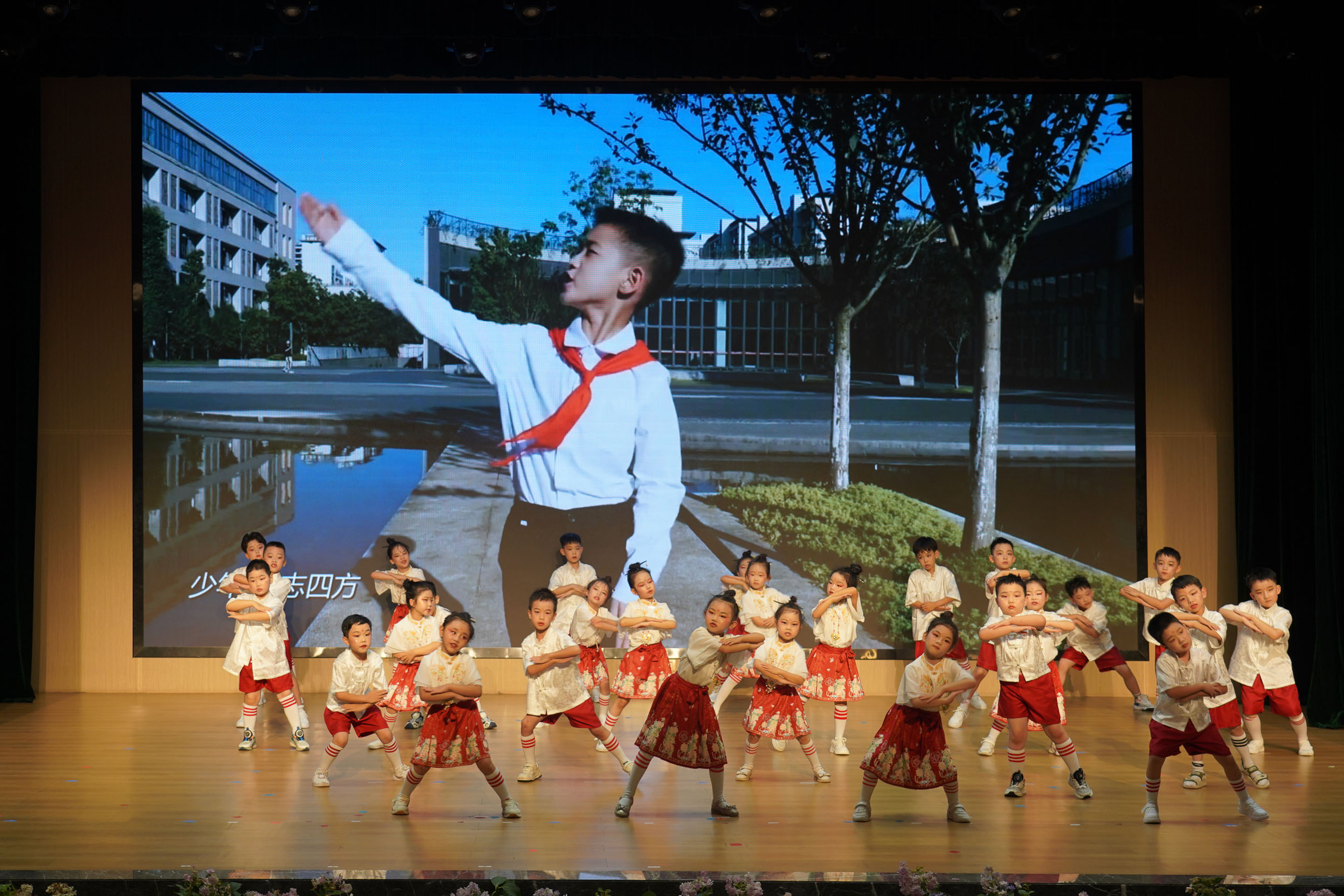 轻舞飞扬,伴随着欢快的舞蹈,充满仪式感的升班暨毕业典礼,在艺术团小朋友《春山如画水如蓝》中拉开了帷幕。