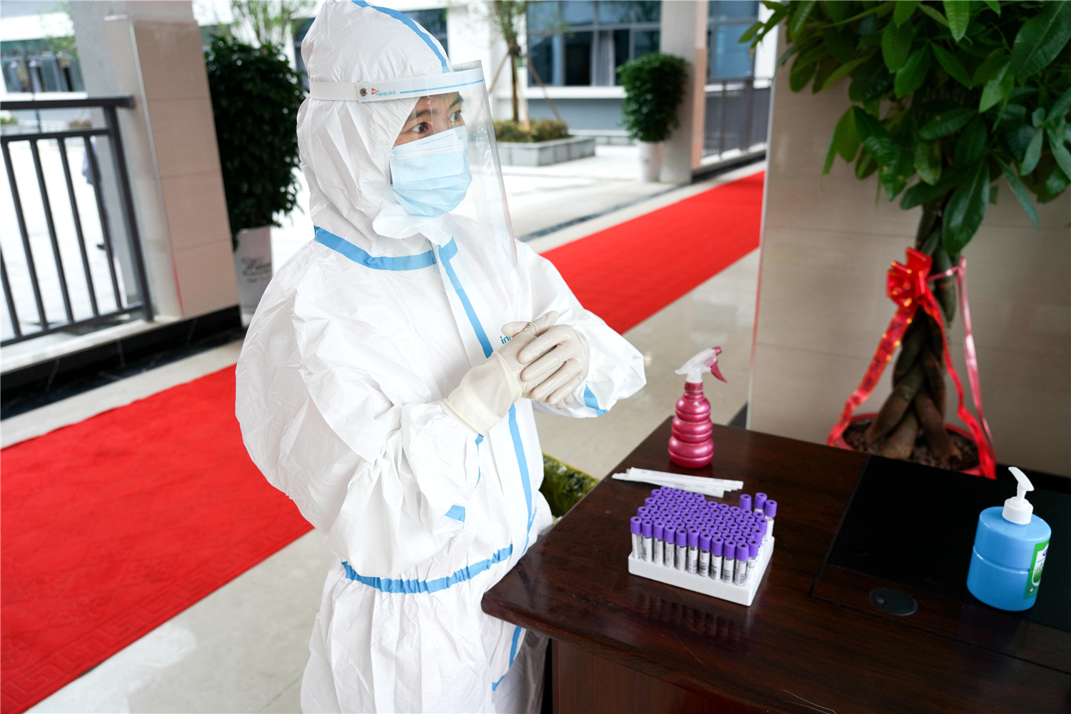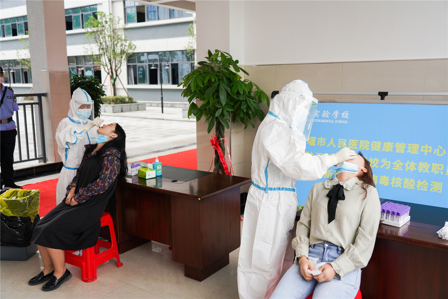 市人民医院健康管理中心医务人员到我校为全体教职员工进行核酸检测