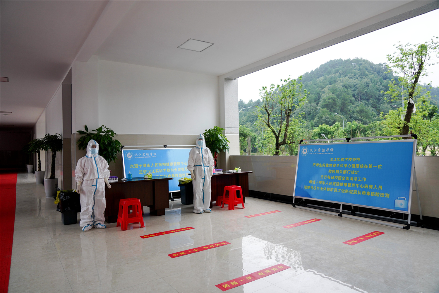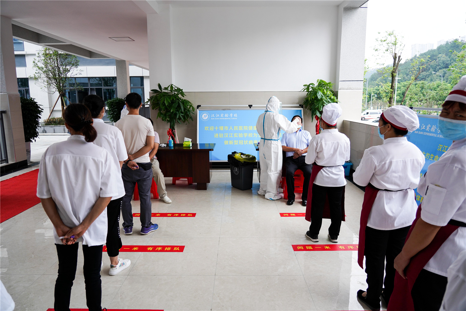 为落实十堰市新冠肺炎疫情防控指挥部《关于切实做好全市各级各类学校2020-2021学年秋季开学工作的通知》(十肺炎防指〔2020〕99号)“教职员工核酸检测全覆盖”要求,我校于8月22日下午,邀请十堰市人民医院健康管理中心医务人员进校,对全体教职员工进行了新型冠状病毒核酸检测。