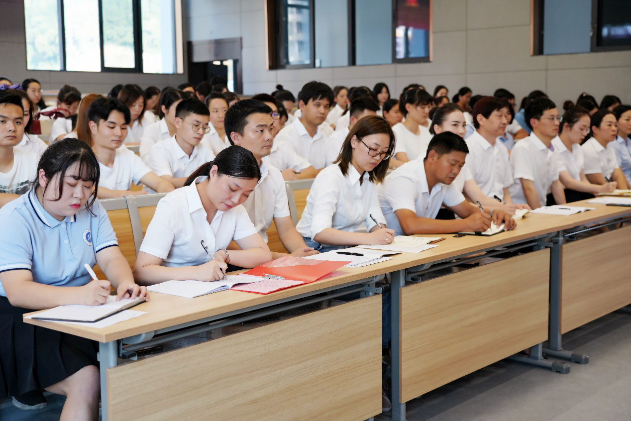 2020年8月28日下午,我校2020年暑期教师培训总结暨开学动员大会在阶梯教室举行,董事长何蕾、校长朱仕竹等领导出席会议,全体教职员工参加会议。会议由副校长陈伟主持。