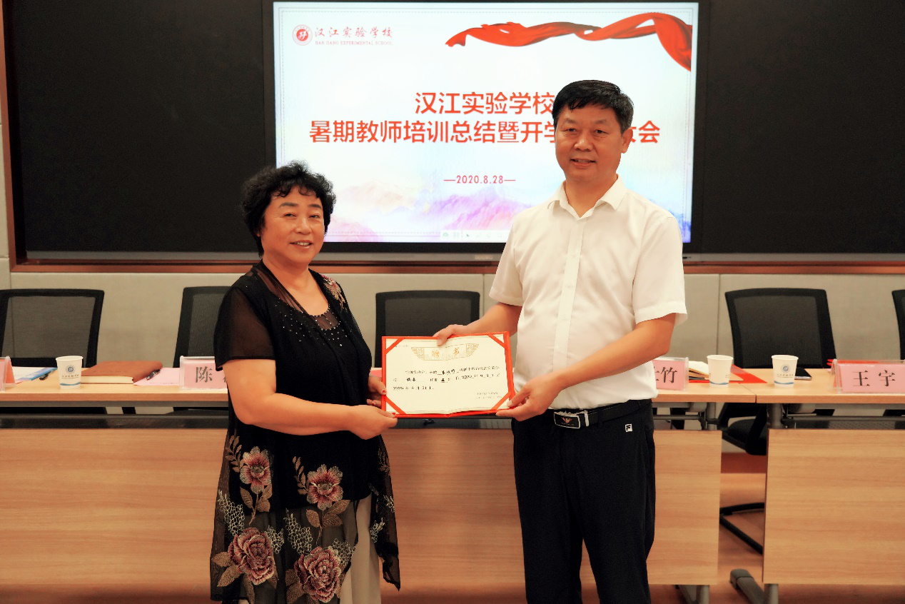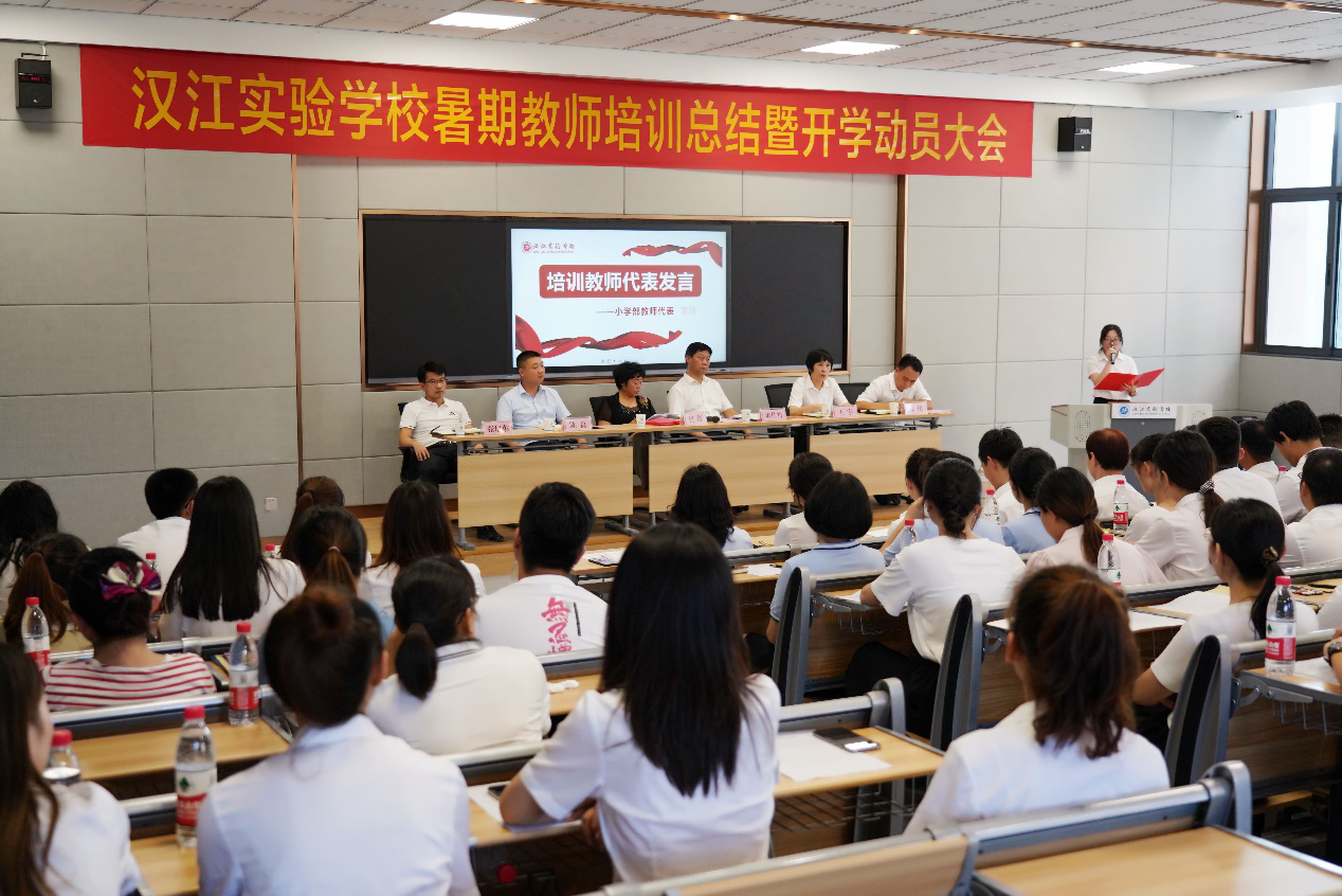 会议开始,陈校长介绍了各位参会领导,按照会议议程,副校长王宇作暑期教师培训总结。