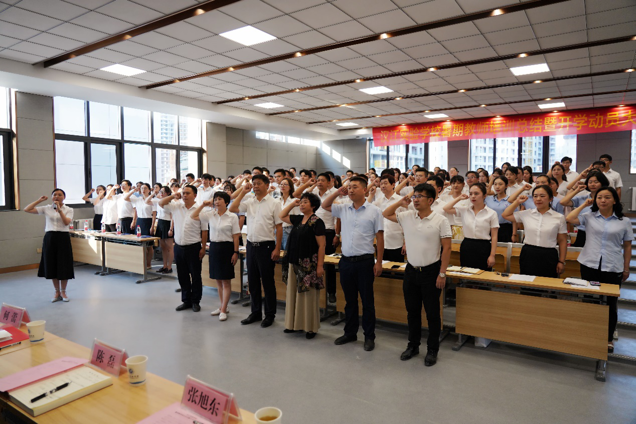 根据会议安排,校领导为暑期培训合格的教师代表颁发了合格证。在政教处主任助理赵延爽带领下,全体教师举起右手庄严宣誓,并签订了师德师风承诺书。