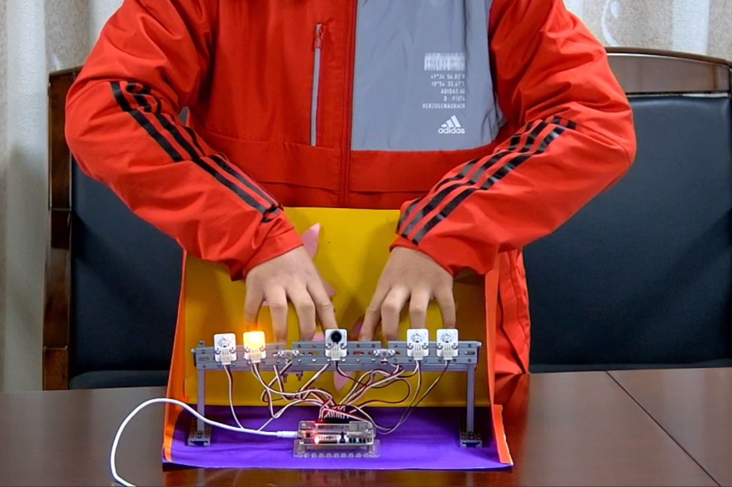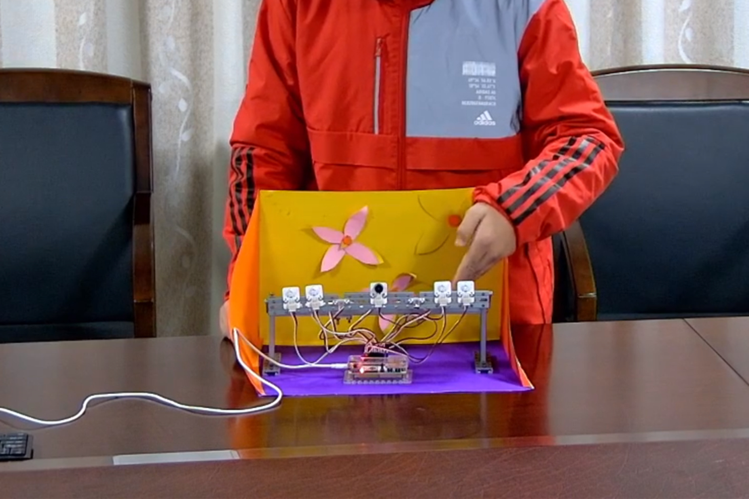 李君昊同学展示蜂鸣器及LED灯光效果?