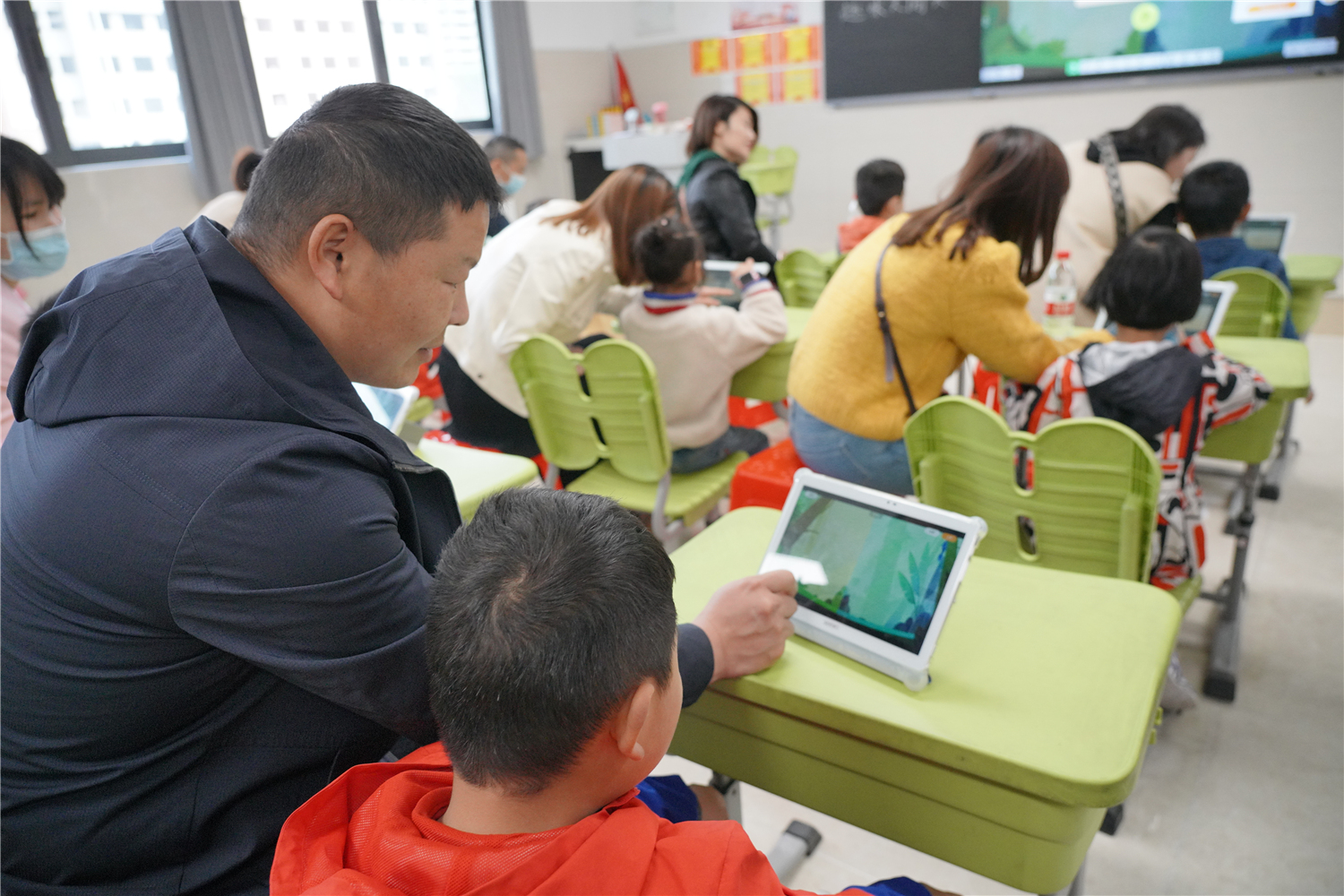 在常态化5G智慧课堂,各位老师熟练使用希沃智慧黑板、易课堂等先进教学软硬件,与体验教学的孩子们高效互动。孩子们与家长共同使用学生平板读题、解题,积极参与趣味知识游戏,更有家长走上讲台,通过智慧黑板现场体验课堂小练习。