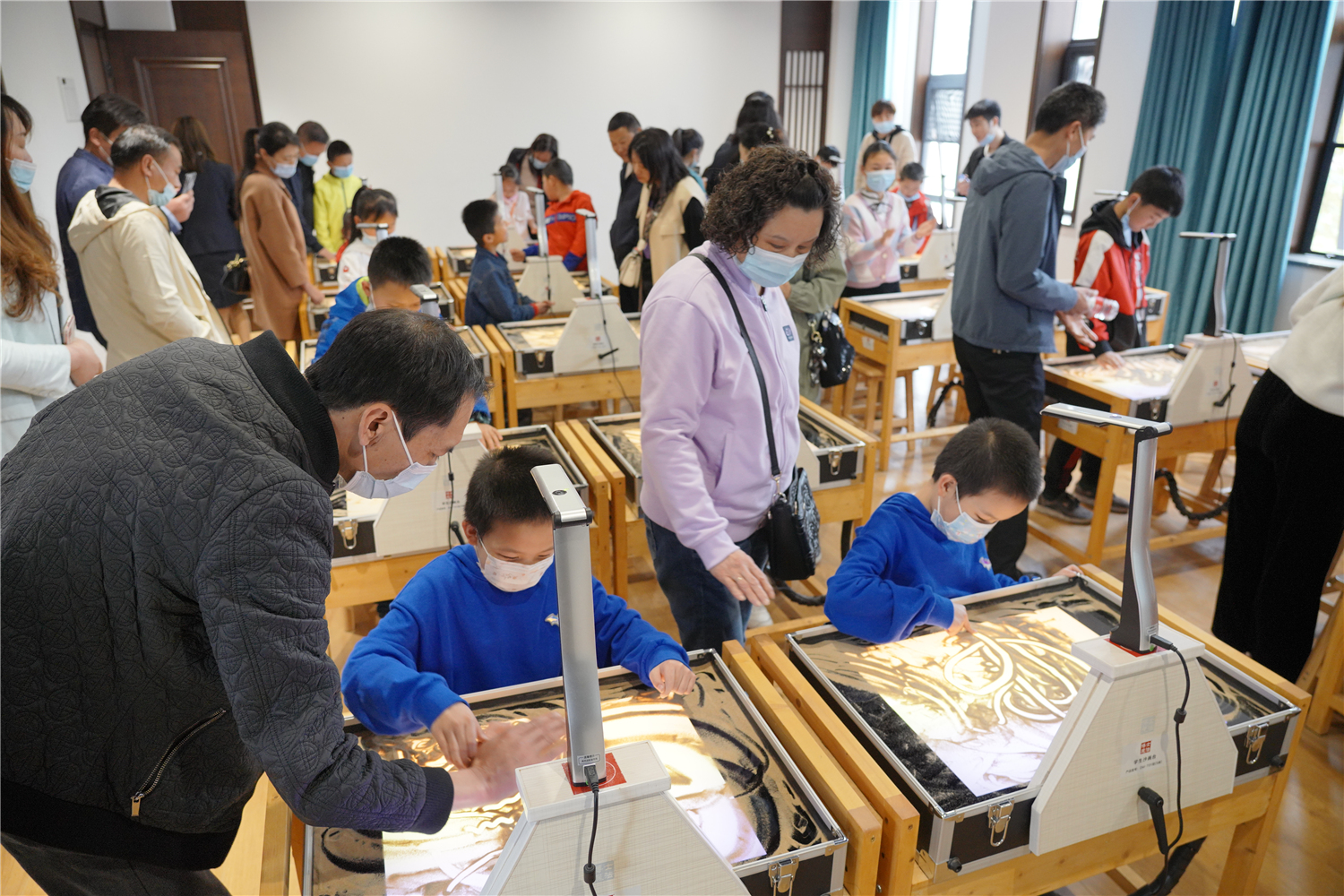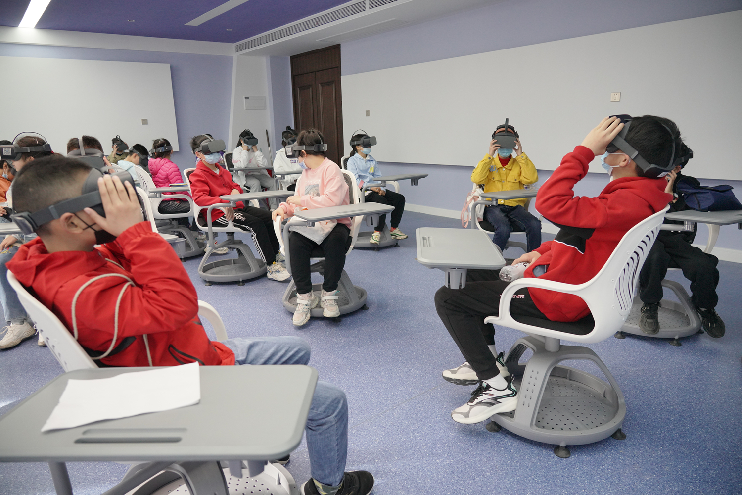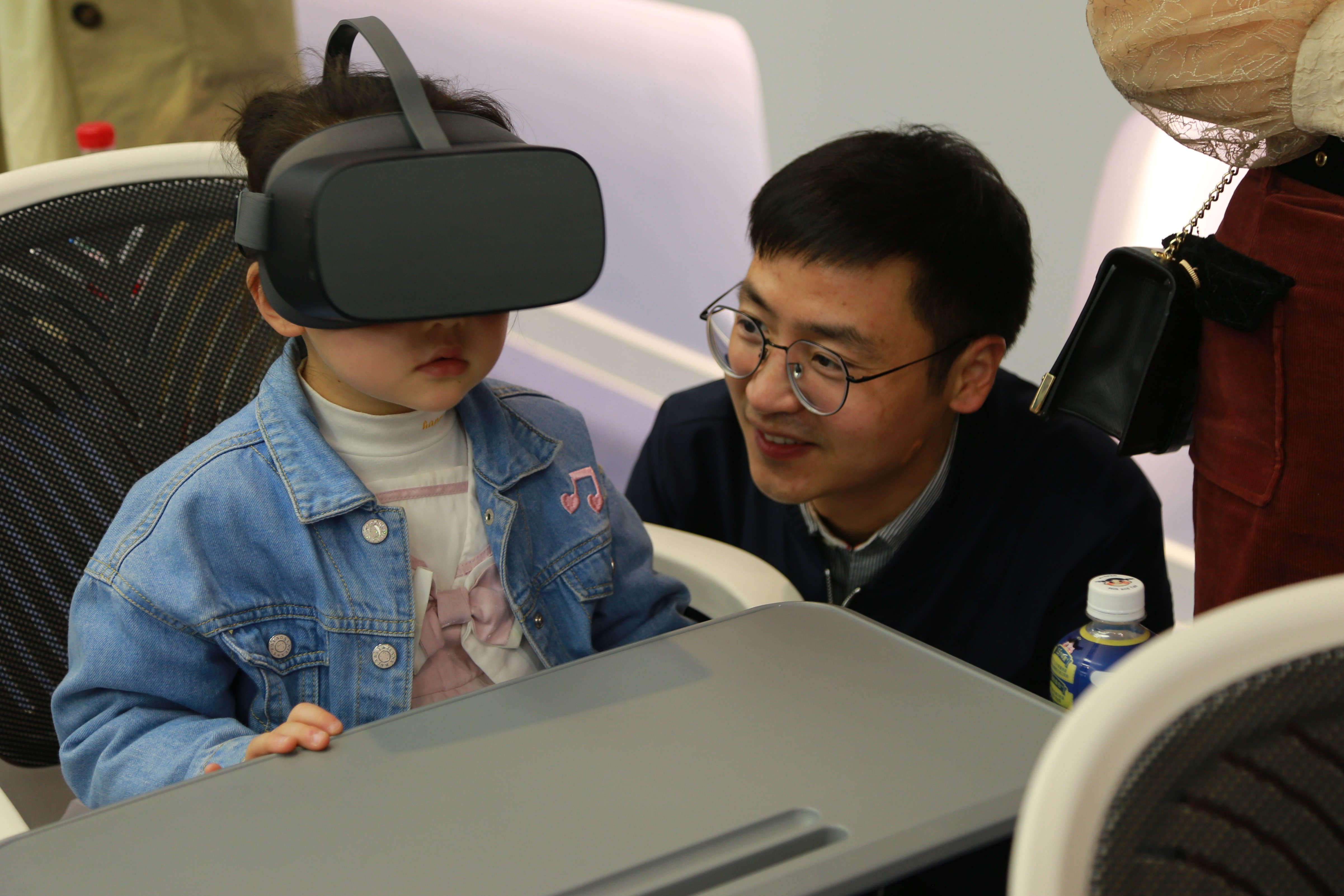 校园文化展示厅、未来教室、电子书法、电子沙画室、VR教室、创客教室等各具特色的功能室,也让孩子和家长们眼界大开。手持毛笔在屏幕上临摹书法,拿起画沙描绘精美图画,带上VR眼镜“穿越时空”,亲自参与创客作品创作等现代化的课程体验让家长们纷纷表示,非常期望自己的孩子能在教育教学设施设备如此高端智能的学校学习和生活。