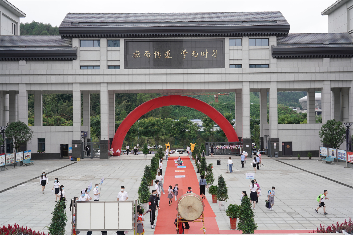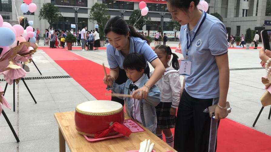 9月1日上午,小学部为一年级新生举行隆重的开学礼。由老师带领一年级同学行拜师礼并宣誓。校长朱仕竹开笔写“人”,并向新生及家长致辞,希望同学们争做“崇文尚武——具有世界交往能力的中国人”。9月1日下午,二至六年级在操场开展了升学礼活动。小学部校长赵延爽击鼓鸣志,班主任为学生们整理仪容仪表,“新老班级”传递班牌,激励着学生们在新学期振奋精神、大放异彩。