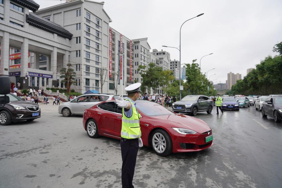交警维持校门口交通秩序