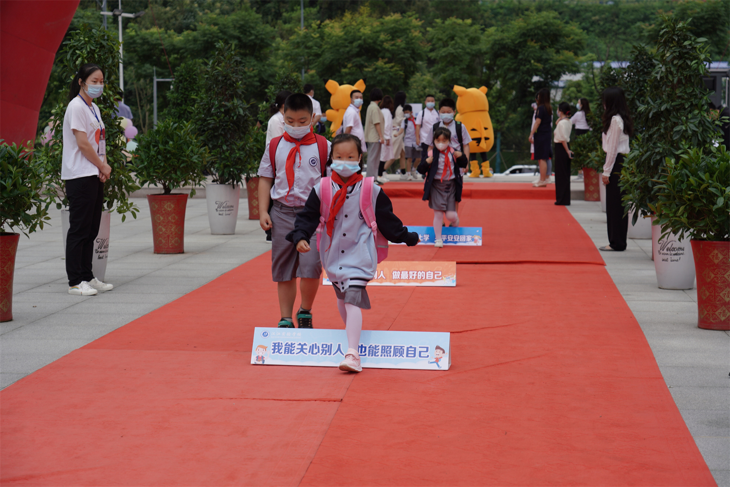 俏皮可爱的皮卡丘摇晃着脑袋,热情地向大家打着招呼,迎接着同学们的到来。走红毯,敲锣鼓,签名字,祝愿同学们新的一年能百尺竿头更进一步。