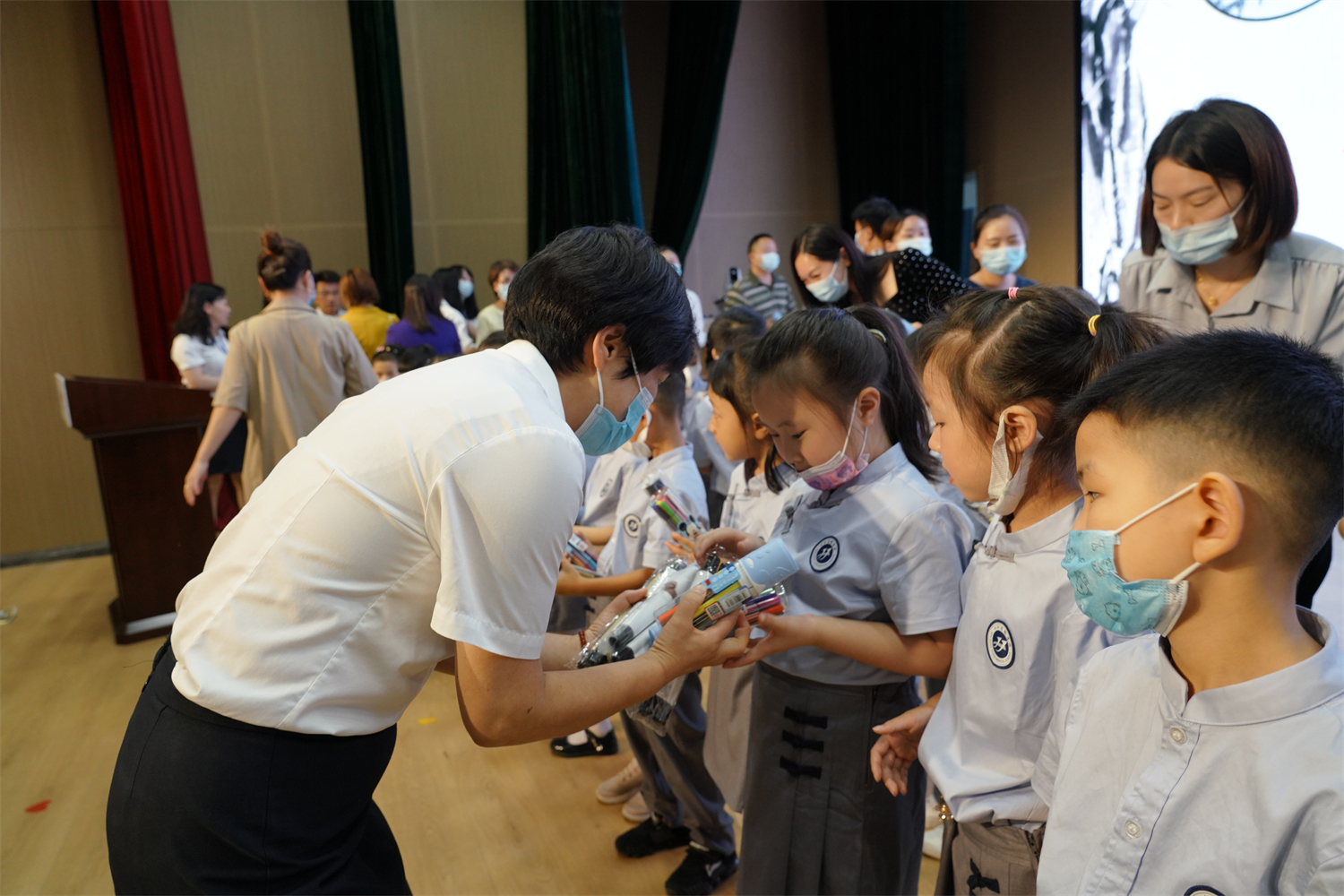 学生家长为学生们送上开学礼物