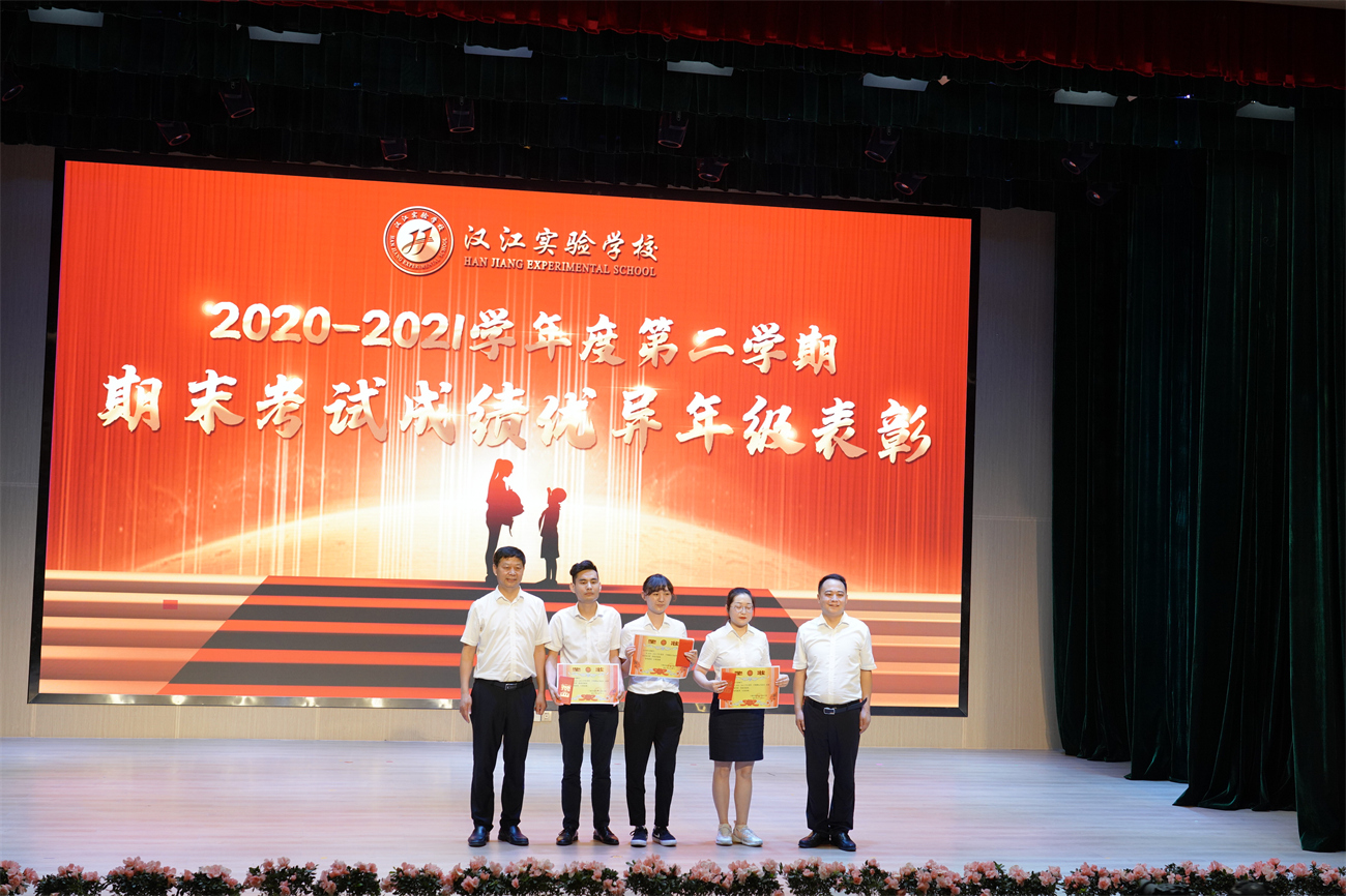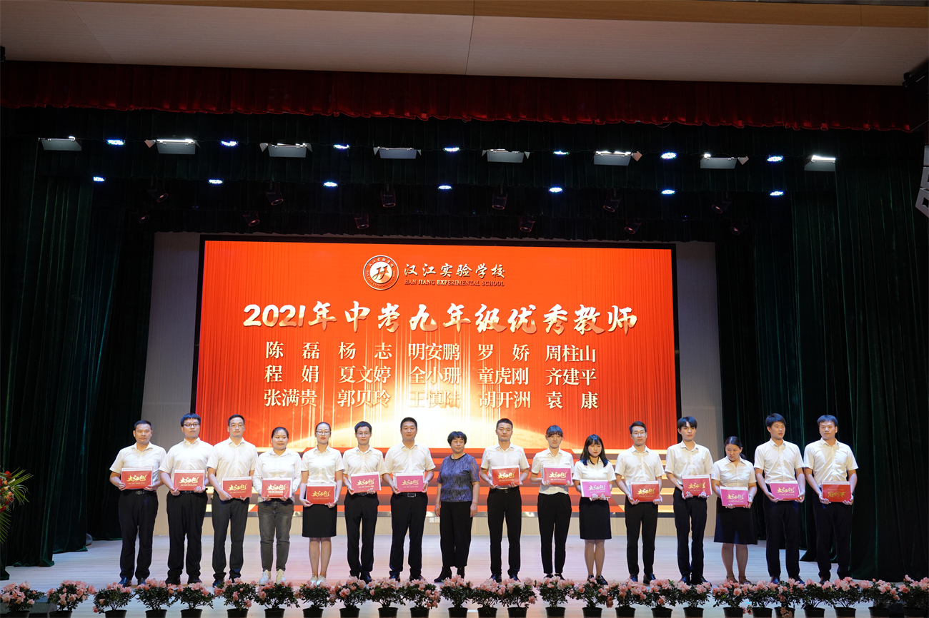 教师节表彰大会正式开始,汉江实验学校副校长张旭东主持表彰大会,宣读了对2021届中考,2020-2021学年度第二学期期末考试成绩优异年级、优秀教师和为校争光荣誉的表彰文件。汉江实验学校董事长何蕾、校长朱仕竹、副校长陈伟、陈磊、王宇等领导为获得荣誉的教师颁奖。