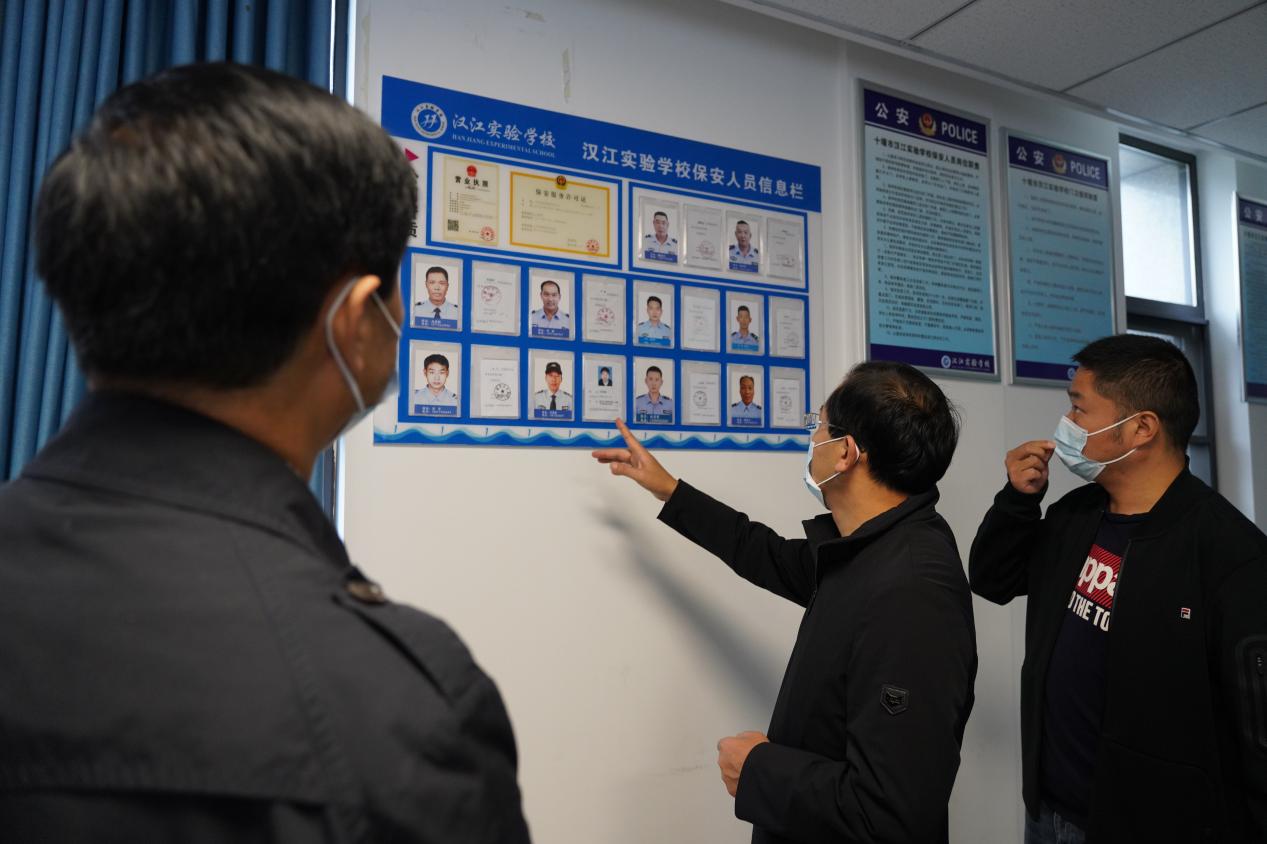 检查组一行深入学校门卫室、食堂等重点区域,对学校安全管理各项工作的规范化、流程化等方面进行了指导,强调学校安全工作的重要性。