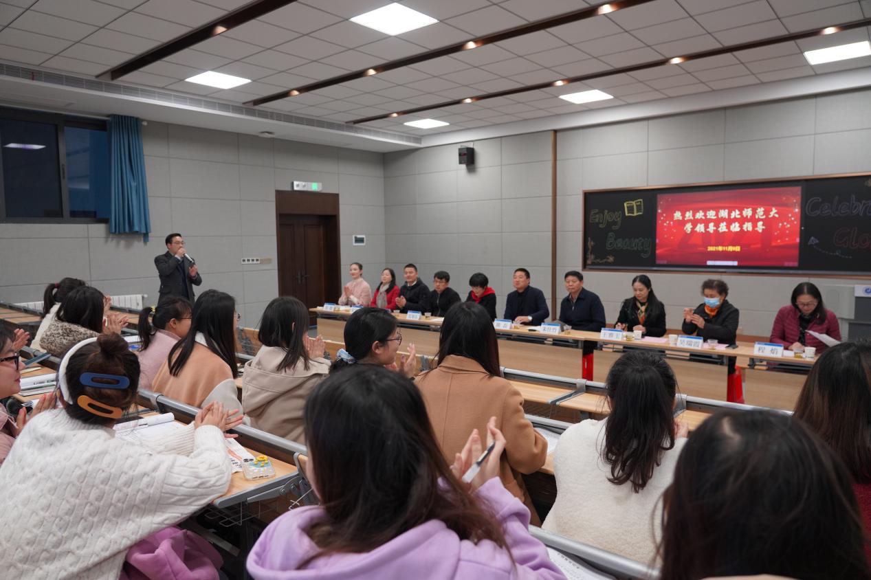湖北师范大学副校长王赛玉高度评价了我校浓厚的教学教研氛围,对我校给予实习教师的科学指导和贴心关怀表示诚挚的感谢,并希望实习教师们珍惜实习机会,认真学习、积极思考、不断总结,为未来做优秀人民教师奠定坚实基础。