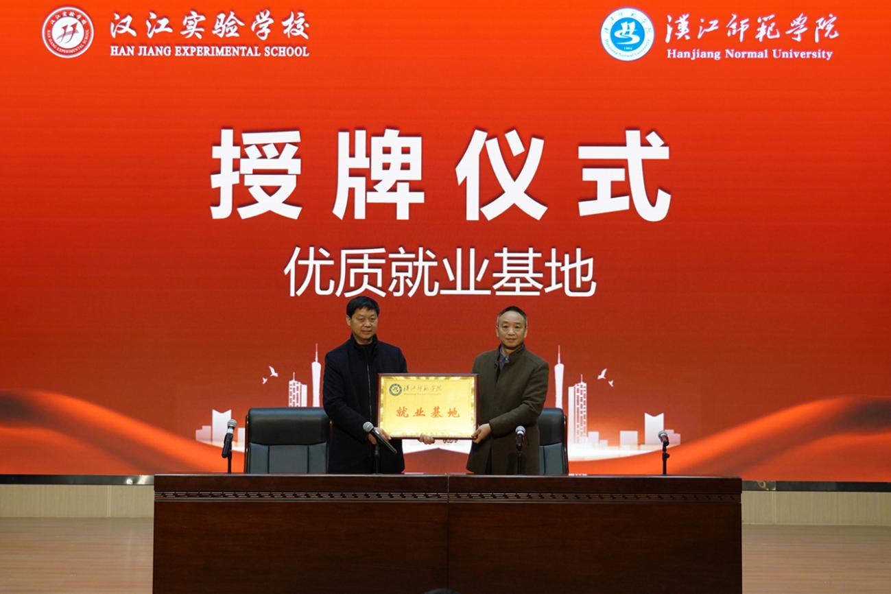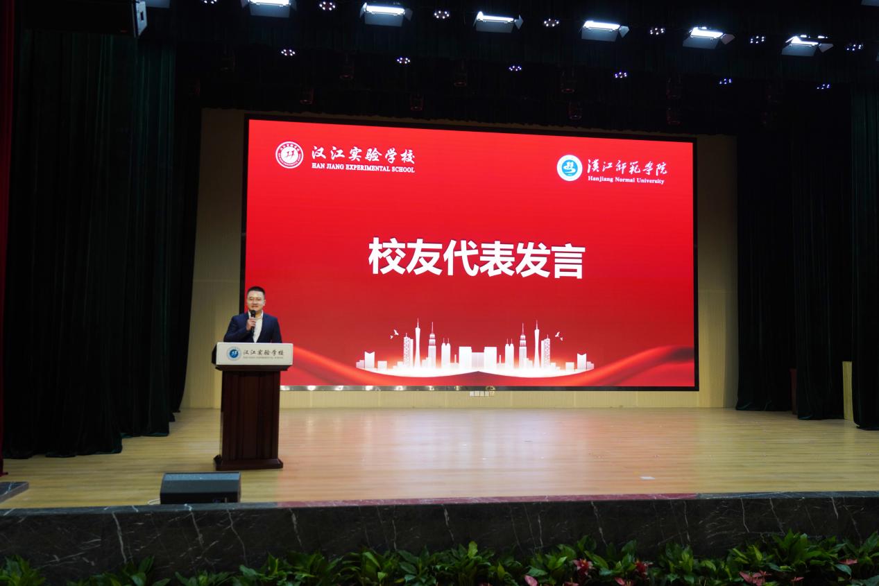 我校初中部教师钟易均和小学部教师马璐瑶代表汉江师范学院毕业校友,分享了在汉江实验学校的工作感悟和成长点滴,表达了他们对汉实的坚定选择、坚持热爱和未来坚守。他们希望学弟学妹怀揣对社会的责任感、求知向上的信念和一颗感恩的心努力追逐梦想,做一名合格的人民教师。