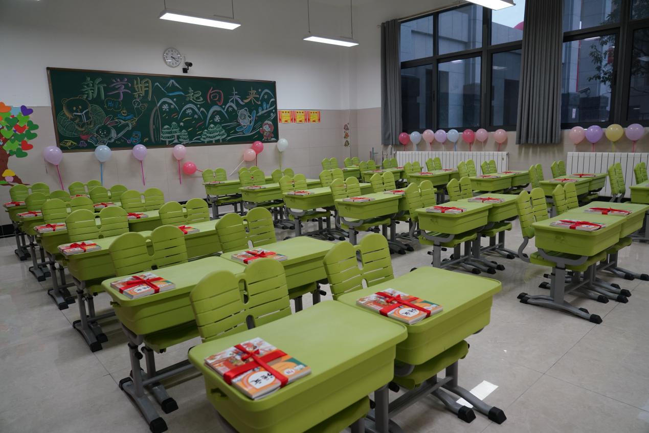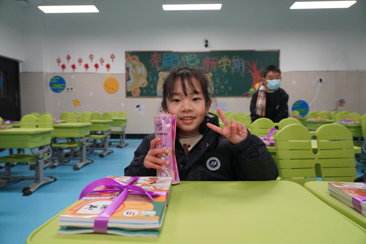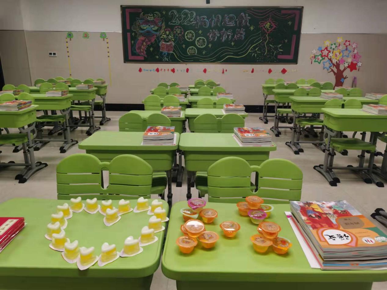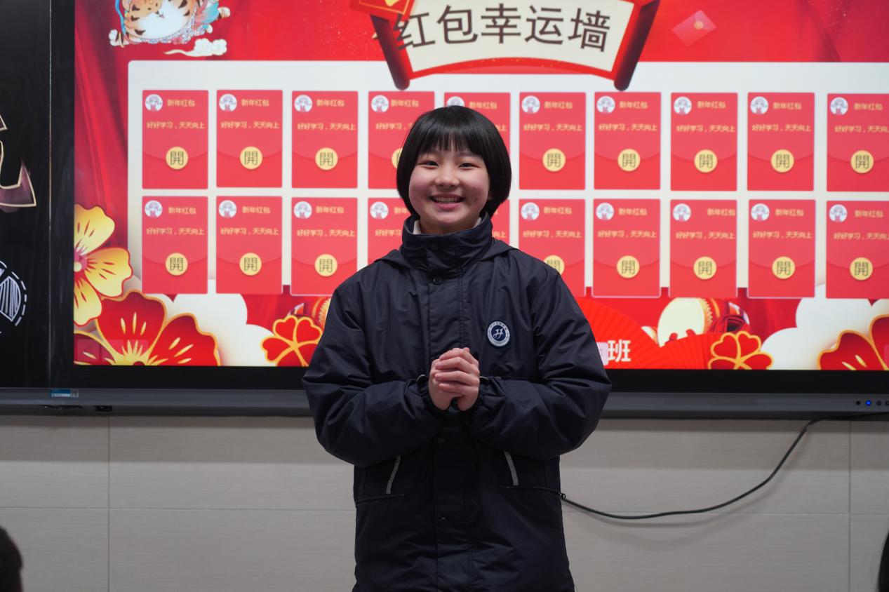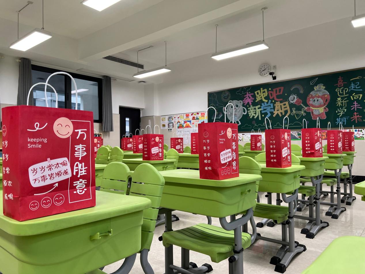 明亮整洁的教室里,小学部、初中部的老师们准备了各式各样的新年装饰和小礼物。红红火火的红包墙、五彩纷呈的气球、手工制作的“糖果鞭炮”......满满心意的开学礼欢迎同学们“回家”,让同学们对新学期饱含信心,充满期待。