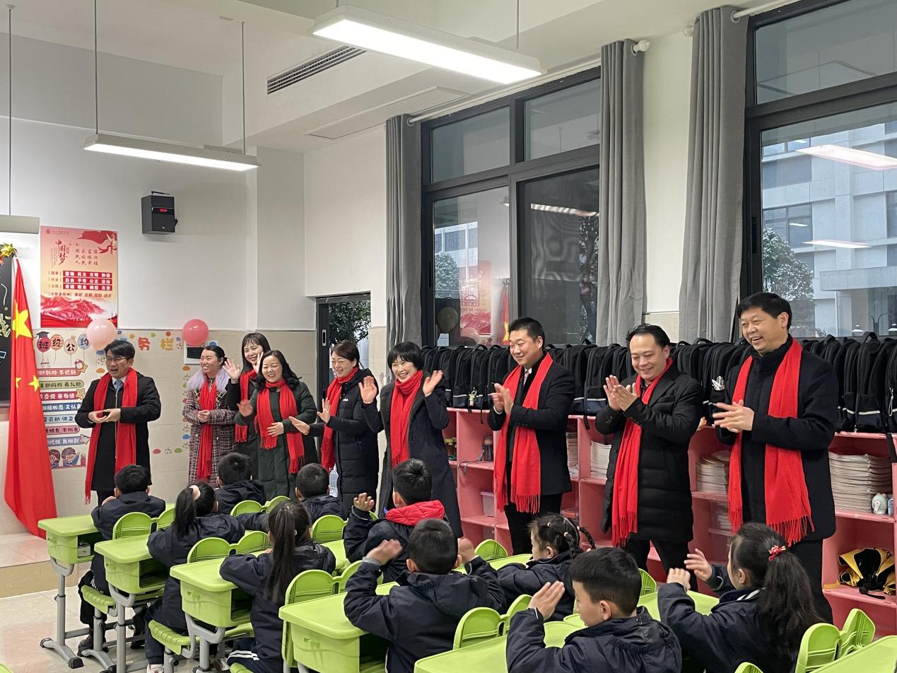 校领导及老师们给学生们送上爱的抱抱和新年祝福,鼓励同学们在新学期再接再厉,再创佳绩。