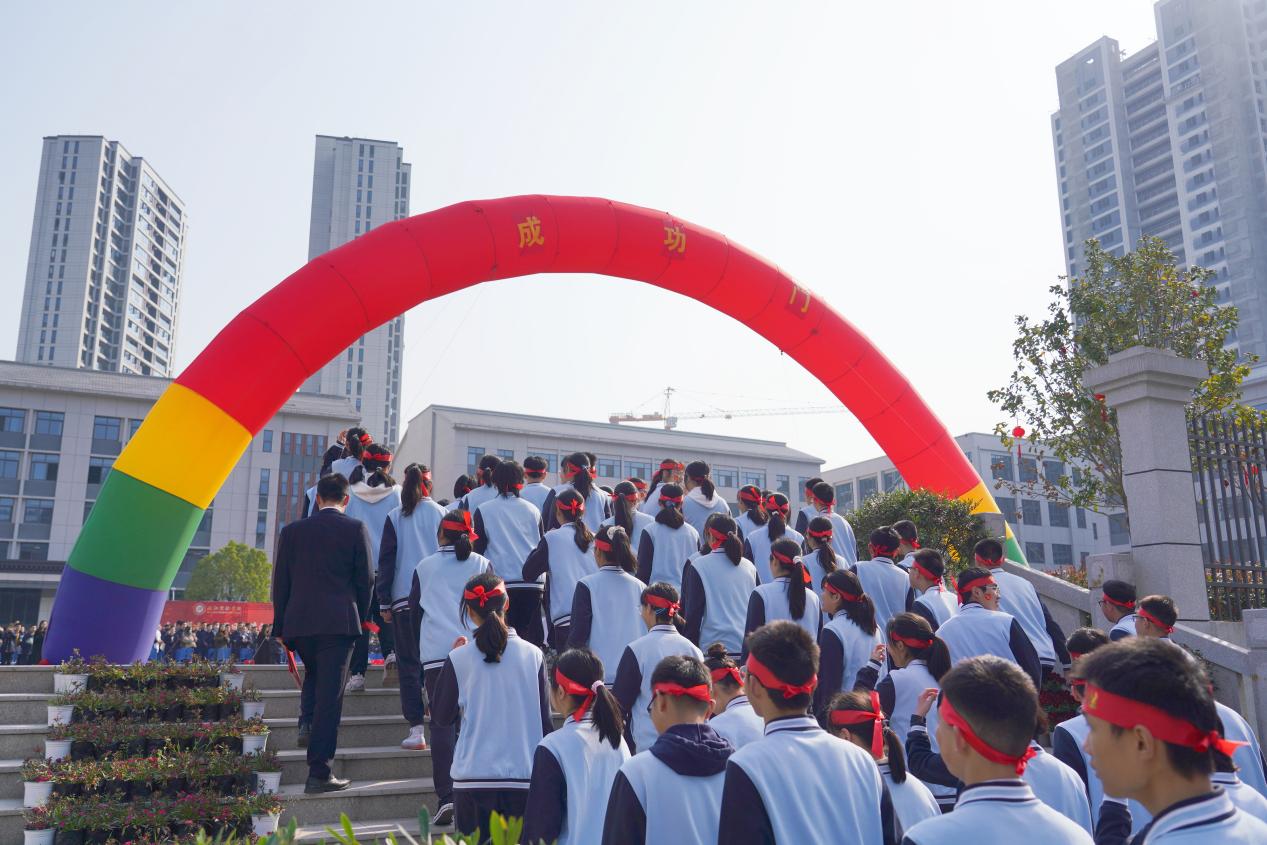 迎着灿烂的朝阳,迈着坚定的步伐,九年级师生们斗志昂扬、步伐坚定、信心十足地走过成功门。