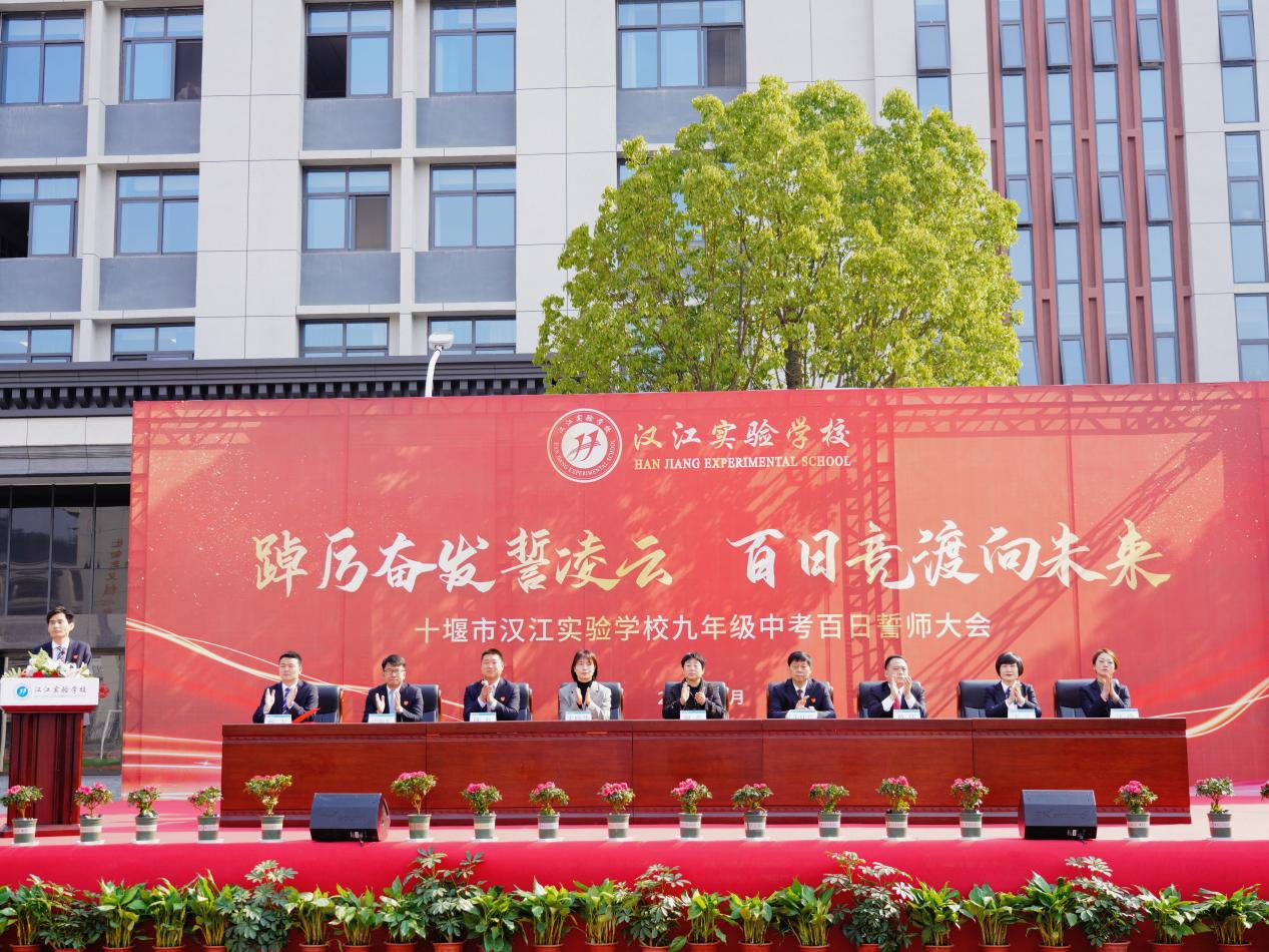 鲲鹏展翅凌万里,策马扬鞭自奋蹄。为激励九年级学子奋战百日的斗志,营造争分夺秒的备考氛围,坚定中考决胜的信心,3月11日上午,十堰市汉江实验学校隆重举行了主题为“踔厉奋发誓凌云,百日竞渡向未来” 的中考百日誓师大会。汉江实验学校董事长何蕾,校长朱仕竹,副董事长、副校长陈伟,优秀学生家长代表朱晓华,副校长陈磊、王宇、张旭东,工会主席江玲,初中部校长杨志以及全体初中部、六年级师生参加。大会由校团委书记周兵主持。