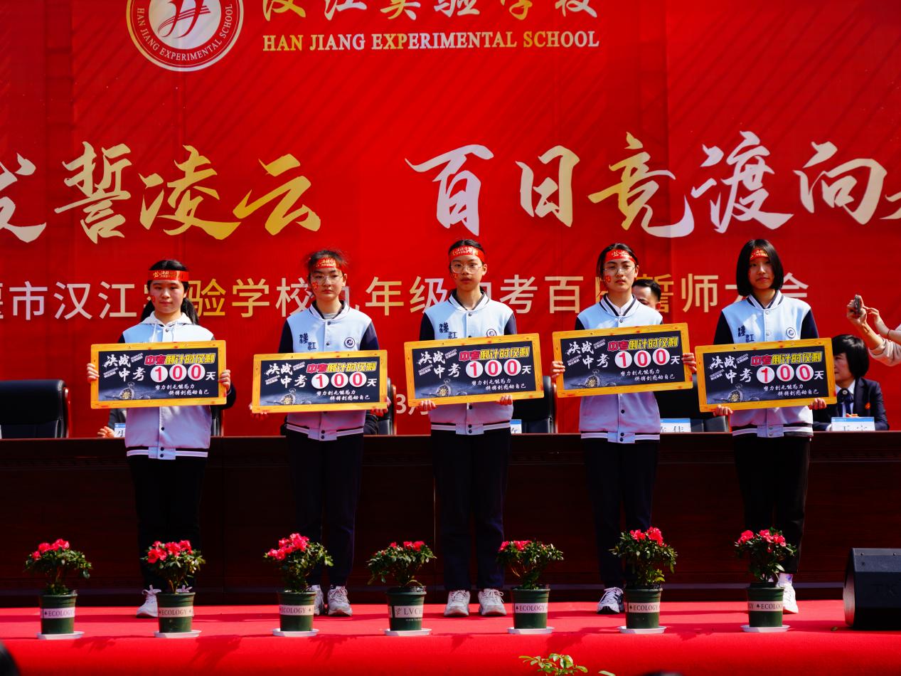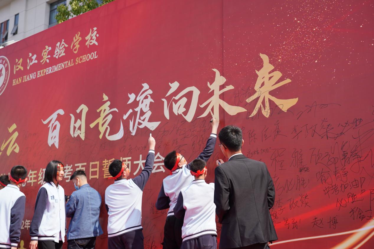 100天,忠于职守,团结作战;脚踏实地,刻苦钻研,燃烧激情。100天,将我们的斗志升级,以百倍的信心、坚定的意志,优异的成绩,实现我们六月的升学梦。100天,黄沙百战穿金甲,不破楼兰终不还!一份承诺、一次决定,更是一份军令状!相信九年级全体同学一定会谨遵誓言,用行动书写最美华章,用汗水播撒最美青春,用成绩再续汉实辉煌!