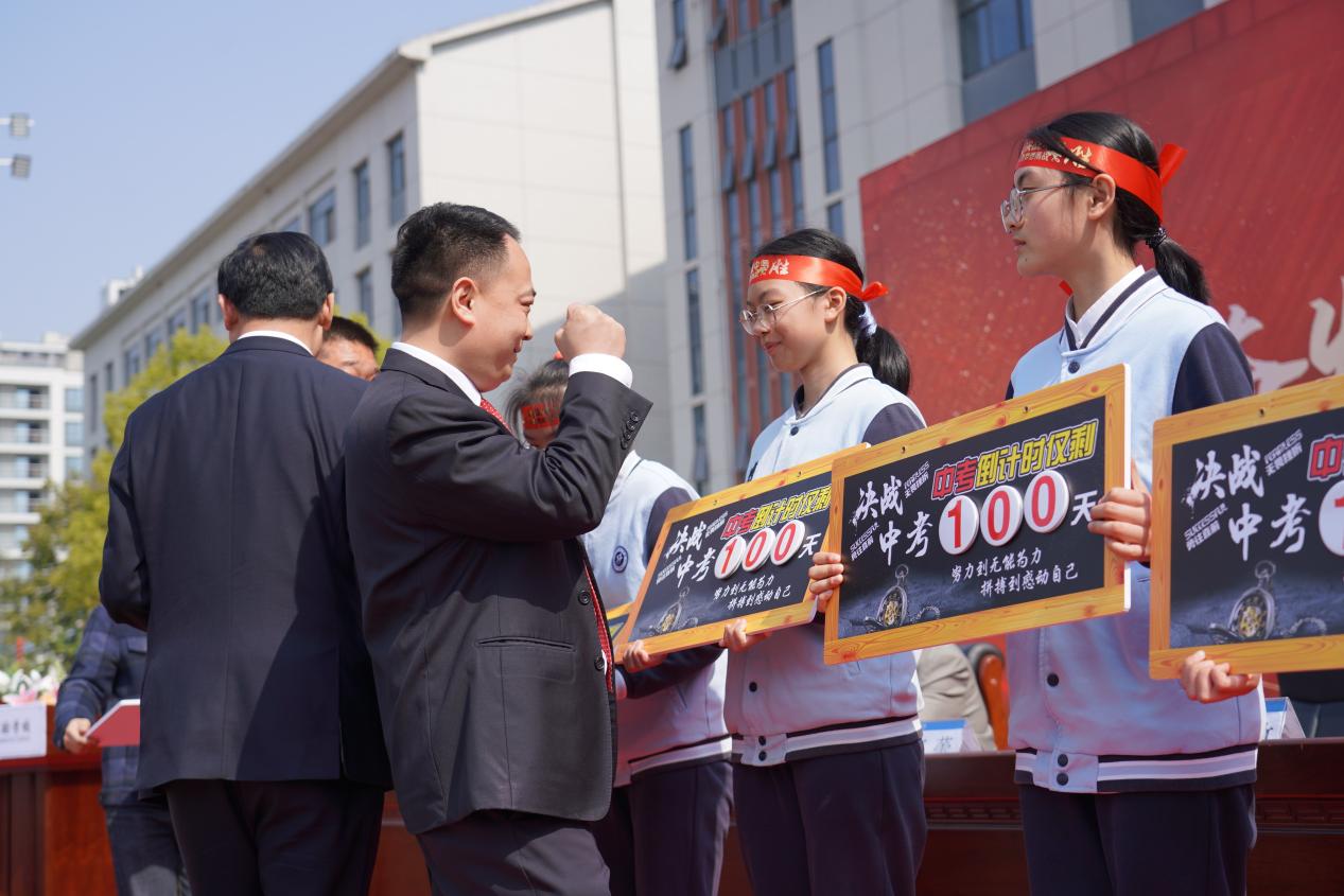 铭记青春誓言,努力拼搏;不挥霍青春,不沉迷过往,不畏惧将来,不无益彷徨;今于冲刺之际,誓师备战,奋进100天,逐梦在六月,一起向未来!铿锵有力的誓言,是青春的赞歌,是进军中考的冲锋号,向重重困难发起的挑战书,九年级学子用不服输的斗志和舍我其谁的霸气感染着现场的每一个人!