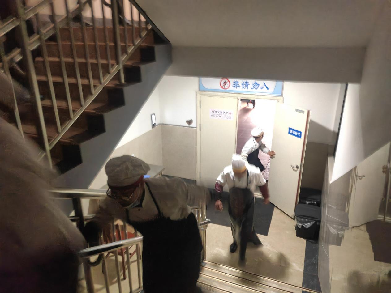 全体人员弯腰捂住口鼻有序撤离到安全区域