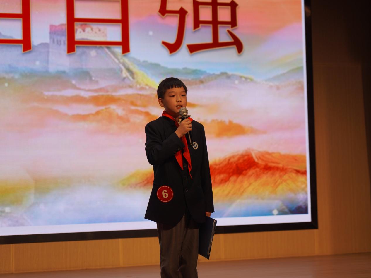 在自由朗诵环节,小选手们用或深沉、或激昂的话语表达了作为华夏儿女的自豪,浓浓的爱国情怀随着选手们的朗朗诵读声洋溢在现场每一个汉实人的心中。
