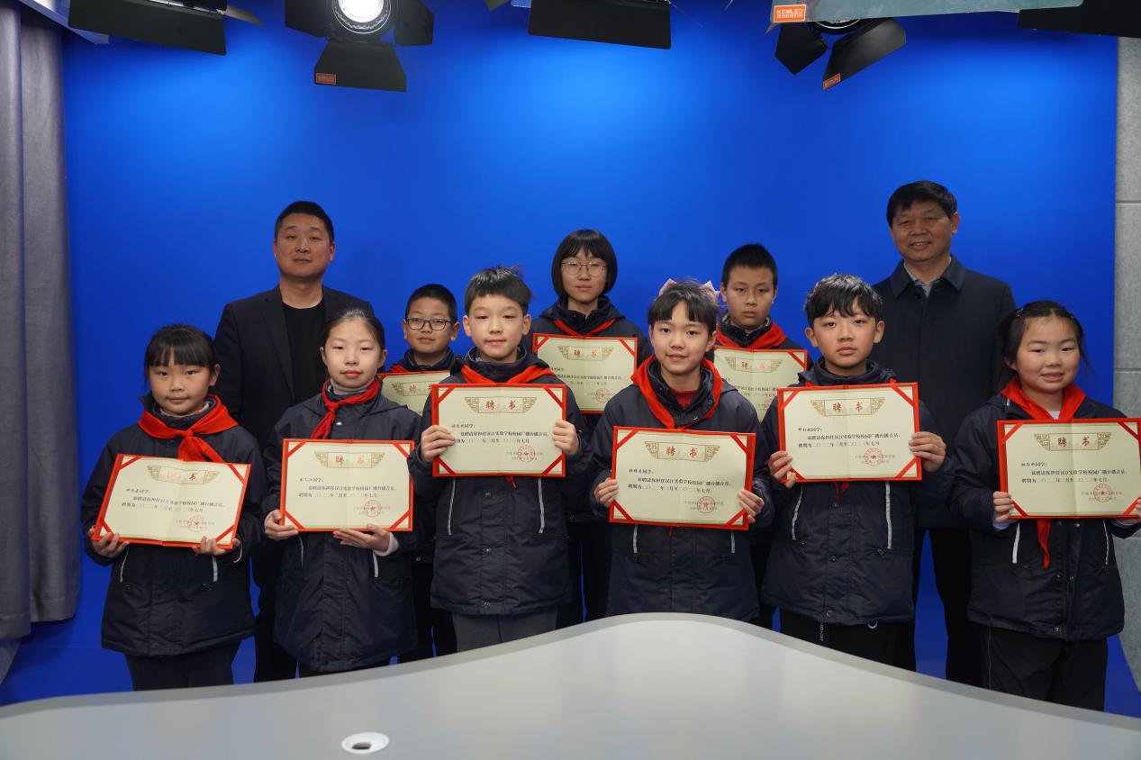3月21日的周一国旗课直播中,校长朱仕竹、副校长陈磊为九名准播音员们颁发聘书。