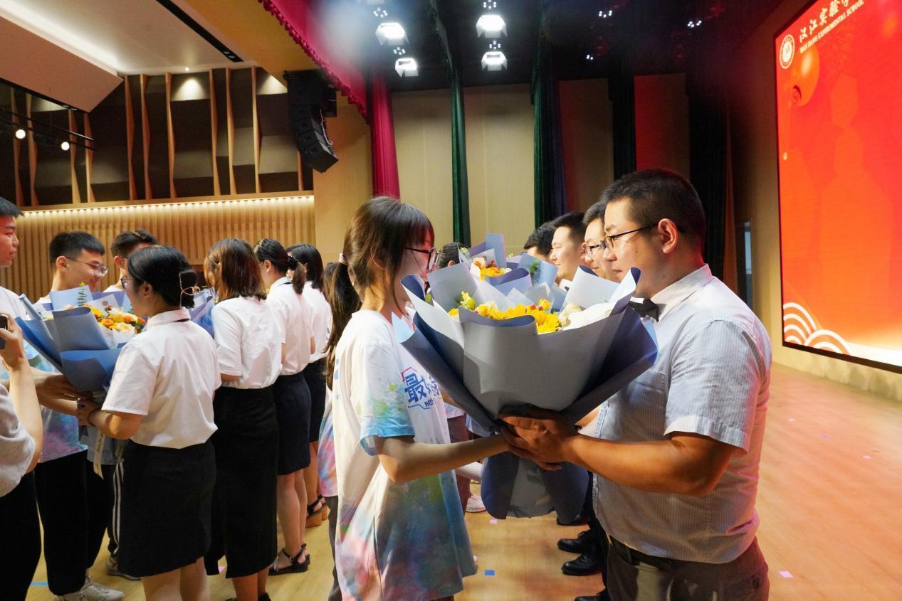 一束鲜花献恩师,一份牵挂记心间。学生代表手捧鲜花,为陪伴成长的老师送上最真挚的祝福。