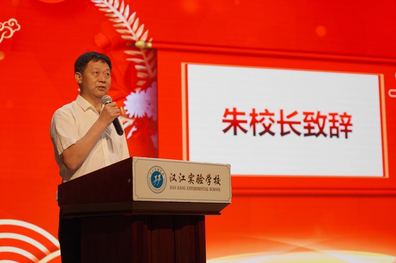 校长朱仕竹致辞,他对家长们对汉实的支持与配合、理解和信任表示感谢,对同学们在汉实勤奋向上、刻苦学习、绽放青春表示欣慰。新时代中国青年,要有家国情怀,也要有人类关怀,发扬中华文化崇尚的四海一家、天下为公精神,为实现中华民族伟大复兴而奋斗!他希望同学们珍藏在汉实的难忘岁月,牢记老师的谆谆教诲,牢记父母的殷切期望,继续秉承“崇文尚武——做具有世界交往能力的中国人”的核心理念,不断沉淀、不断积累、不断完善自己,让自己有力量、有温度、有光芒,温暖他人,照亮自己;用健康乐观的心理和积极的心态去面对未来,追寻人生无限广阔而美好的前景。