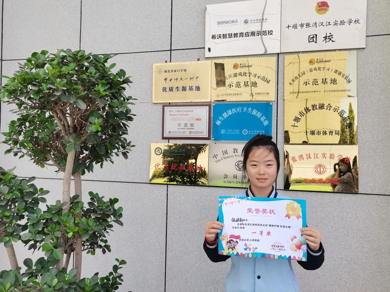 热烈祝贺汉江实验学校张硕轩在区“爱眼护眼 我是先锋”活动中夺冠