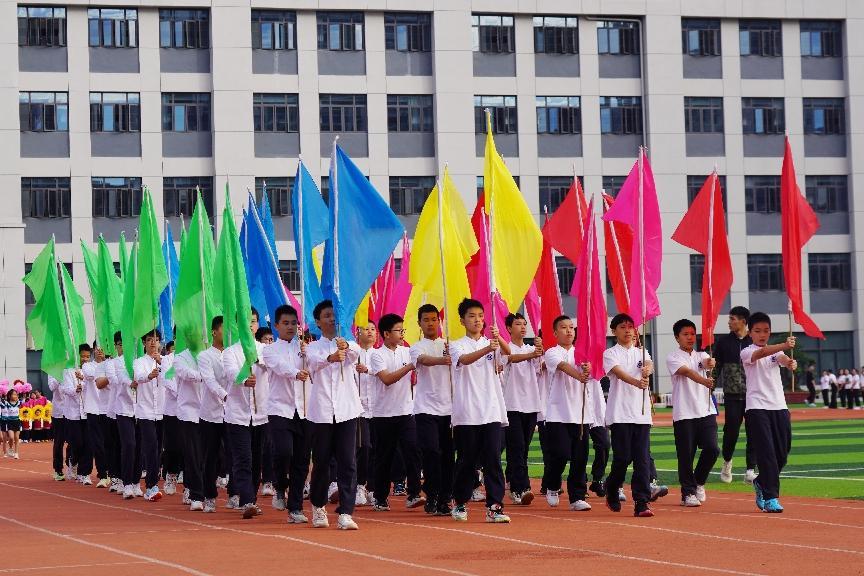 灿烂的朝阳映衬着青春希望,铿锵的步伐展现着汉实学子的意气风发。伴着慷慨激昂的《运动员进行曲》,在国旗、校旗、会徽队的引领下,鼓号队、彩旗队、鲜花队及各学部运动员方阵踏着整齐的步伐,依次入场走过主席台。同学们精神抖擞、斗志昂扬,用矫健的步伐、响亮的口号展现了汉实学子健康向上、团结进取、奋勇拼搏的精神风貌。