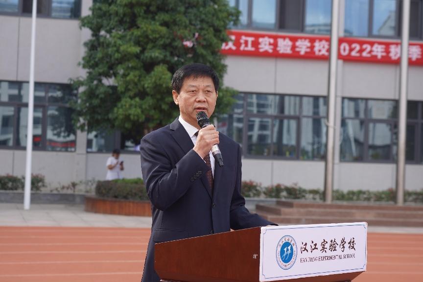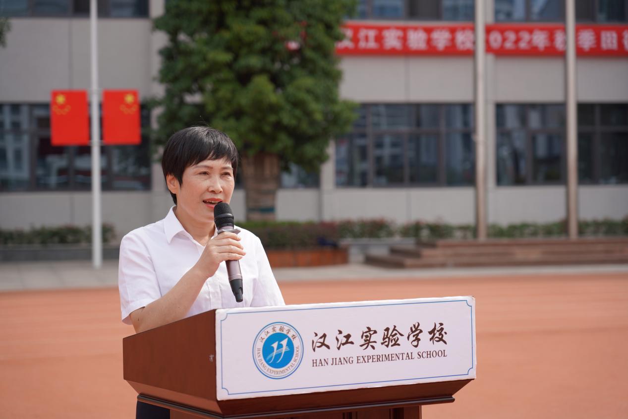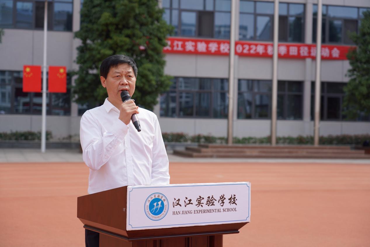 校长朱仕竹致开幕词,他为精神抖擞、昂扬向上的汉实学子点赞,并表示,身体健康是成为德智体美劳全面发展的祖国接班人的基础。朱校长希望同学们通过此次运动会检验自身的素质,发扬顽强拼搏、合作共赢的精神,充分发掘自身的运动潜能,培养良好的体育锻炼习惯,为国家富强、民族振兴做出自己应有的贡献。随后,朱校长宣布汉江实验学校2022年秋季田径运动会正式开始。