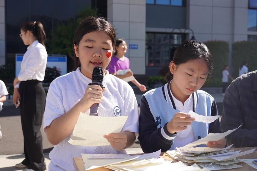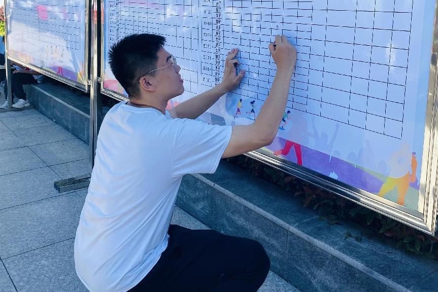 同学们手写了的加油祝福语投稿到广播站,为赛场上的运动健儿们加油。