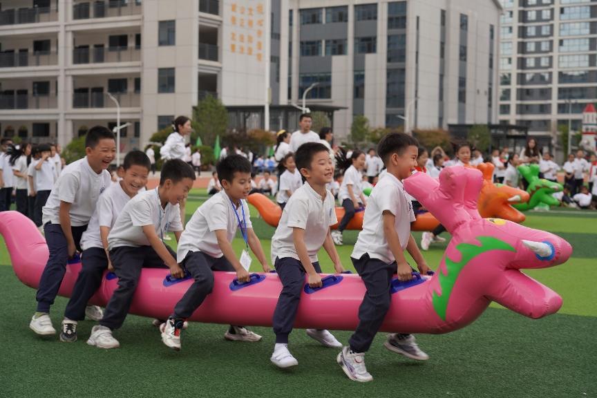 本次运动会分别设置学生和教师竞赛组,除了传统的田径比赛项目外,特别依据年龄段设置了“赶小猪”、“面对面夹球跑”、“穿越障碍跑”、“袋鼠跳”、“旱地龙舟赛”、“海底捞月”、“沙包投圈”等趣味比赛项目。