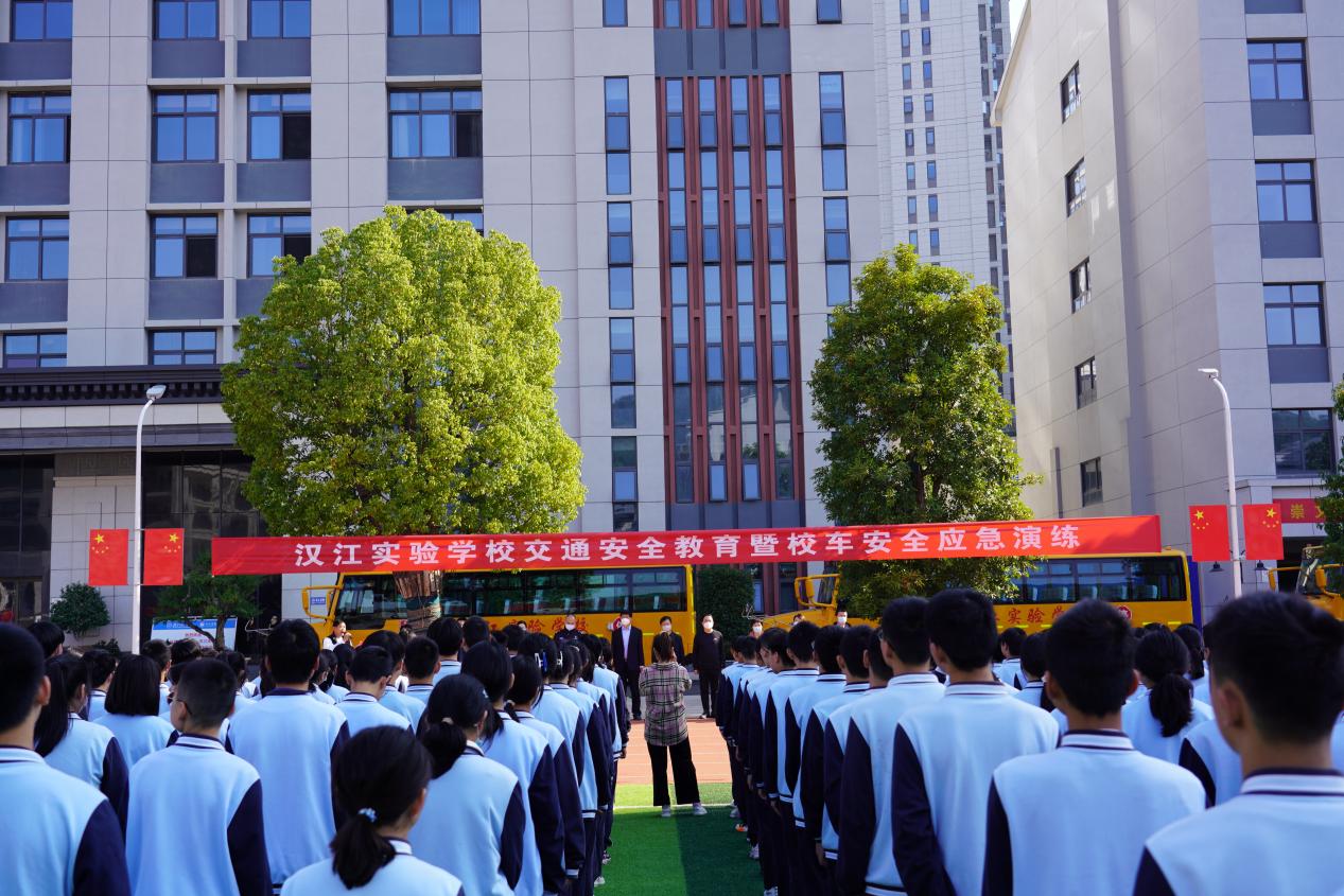 校车安全常演练 平安出行永相伴——汉江实验学校交通安全教育暨校车安全应急演练