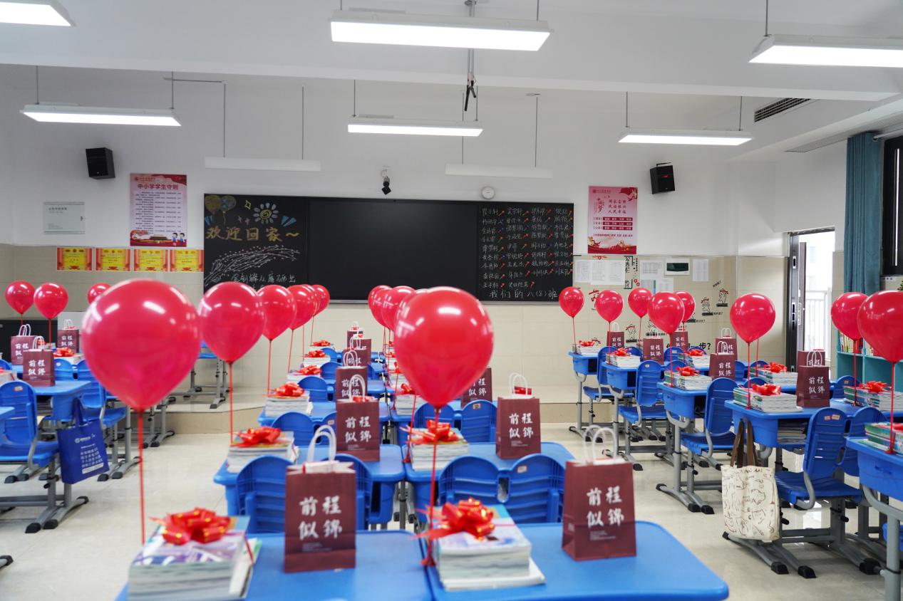 回到阔别已久的教室里,映入眼帘的是仪式感满满的开学礼在欢迎同学们“回家”。抽红包盲盒、棒棒糖、开学礼盒......老师们精心布置有温度、有创意的小装饰和小礼物,让同学们对新学期饱含信心,充满期待。