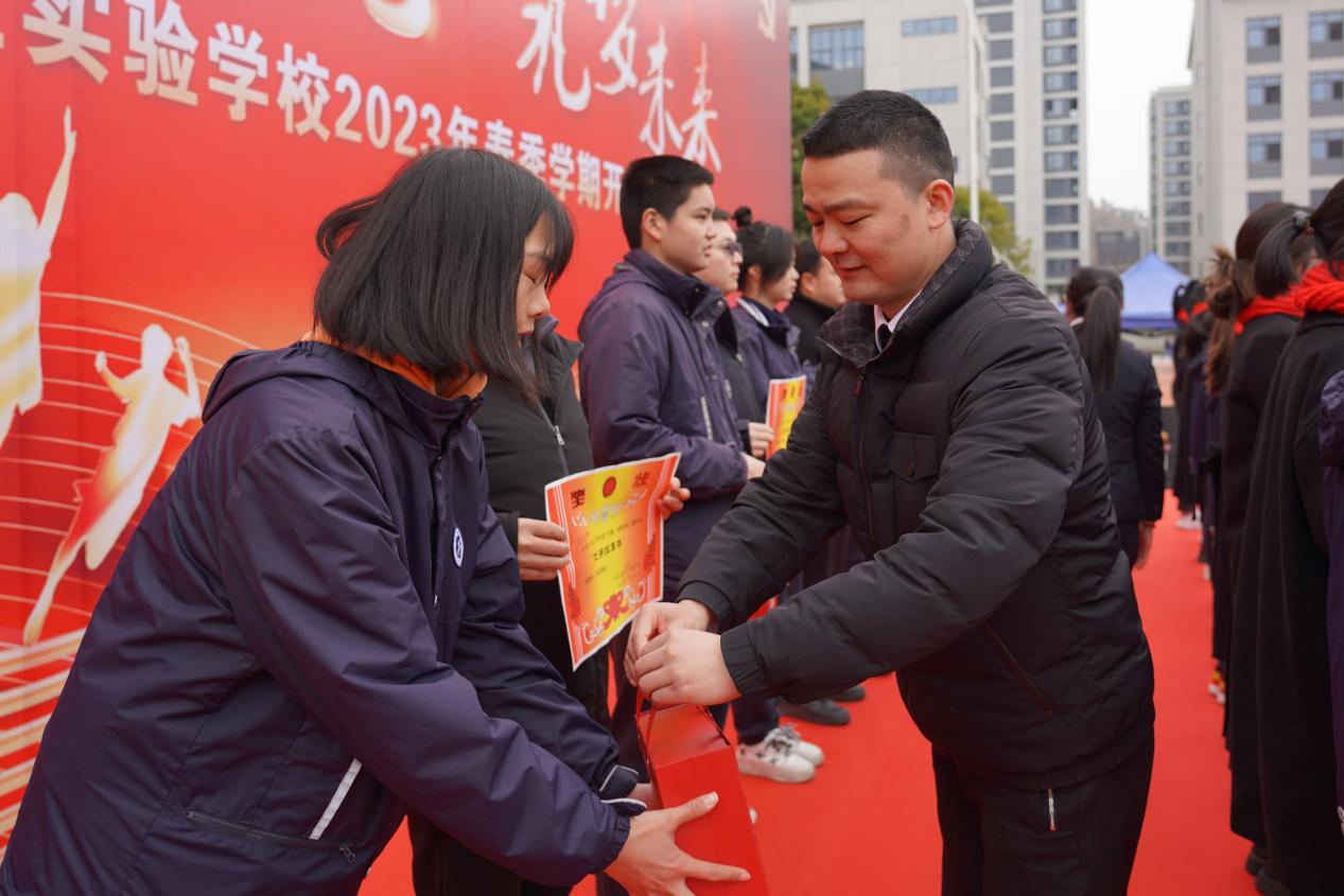 副校长陈磊宣读《关于表彰2022-2023学年度上学期优秀班集体的决定》,幼儿园园长郑媛、小学部校长吴霞、初中部校长杨志为优秀班集体代表颁奖。
