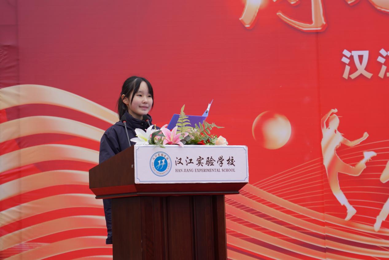 优秀学生代表九(5)班贺粲如对学弟学妹们寄予了深切的期望,她希望幼儿园的小朋友们学会独立,永葆善良,不惧失败,坚守热爱;希望小学的弟弟妹妹们珍惜时间,全身心地投入学习,打开属于自己的未来之门;希望初中的同学们持之以恒,用汗水浇灌,用智慧耕耘,让青春不留遗憾。