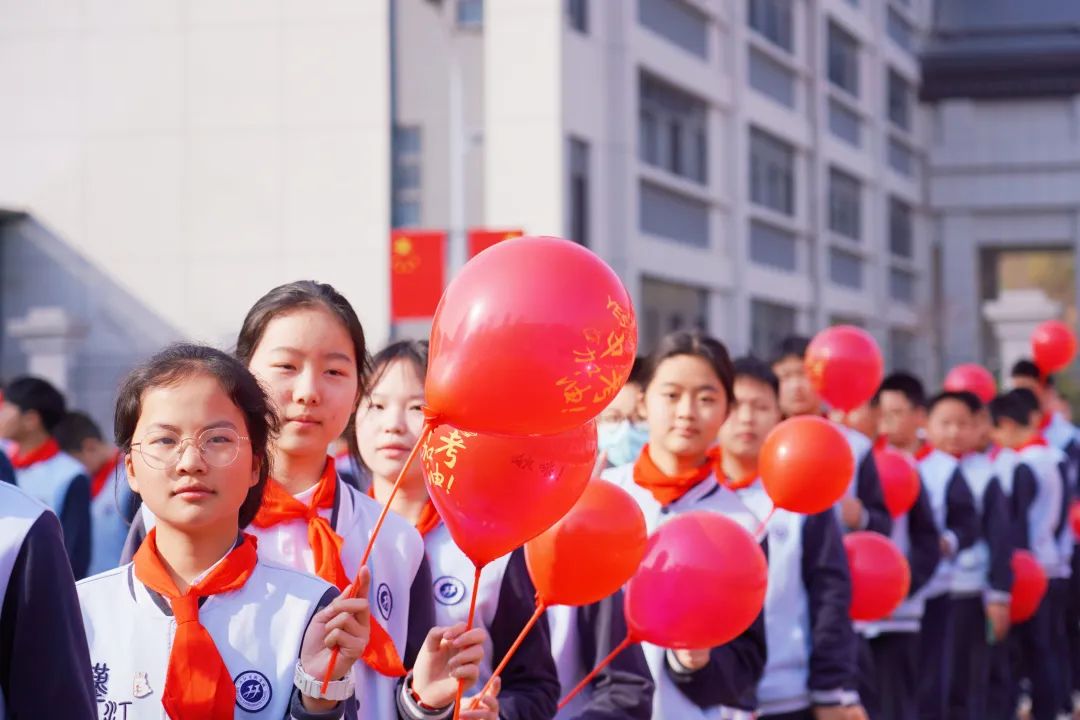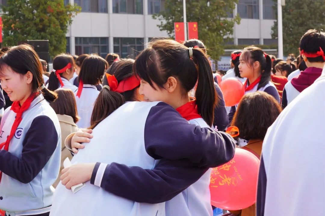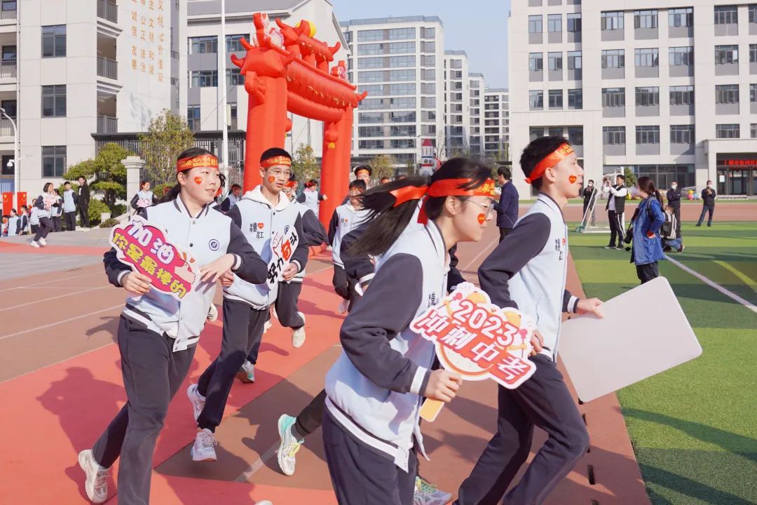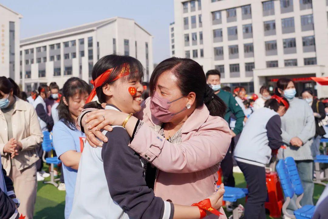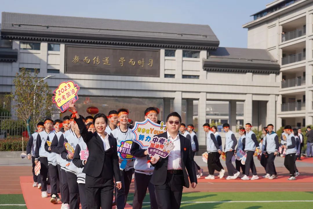 全体九年级家长们亲临现场,为孩子们戴上象征胜利的丝带,激励全体学子坚定理想、乘风破浪、驶向成功的彼岸。