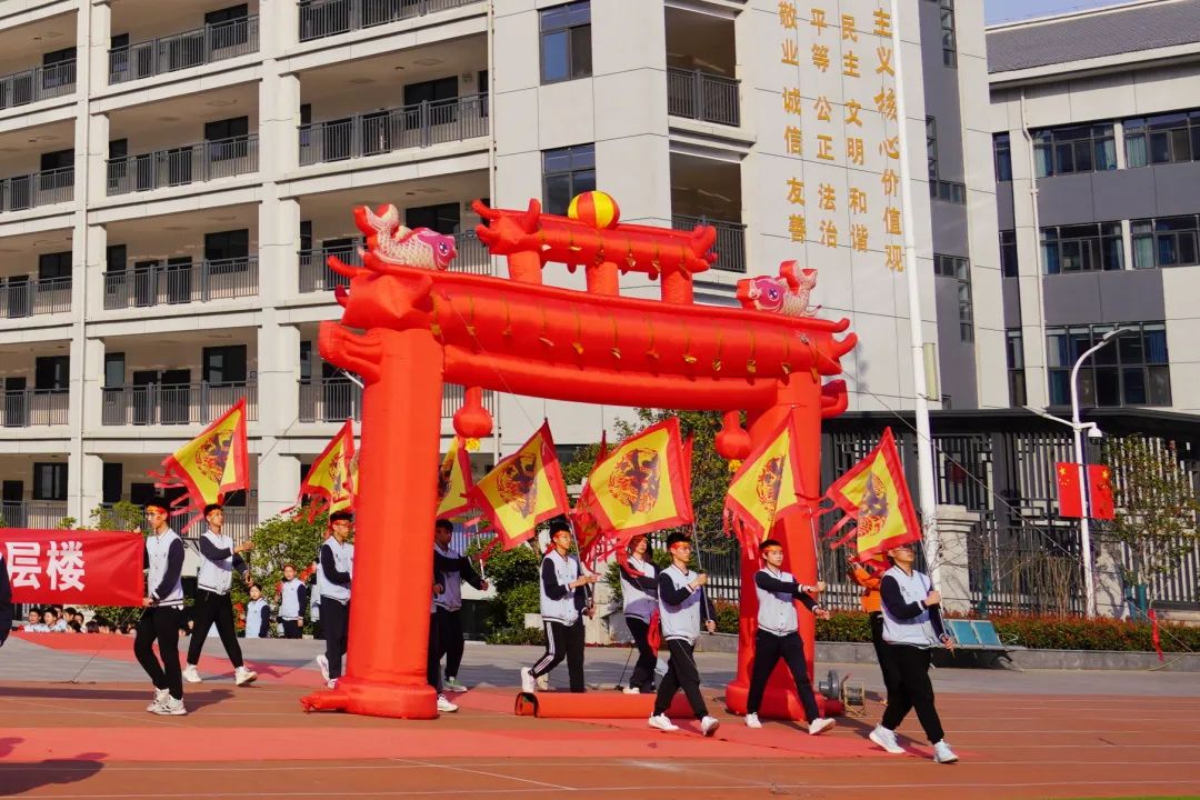 在和煦的春风中,战鼓声响彻云霄,横幅队和战旗队迈着坚定有力的步伐跨过“成功门”,他们蓬勃的朝气、自信的笑容彰显着青春的勇敢无畏。