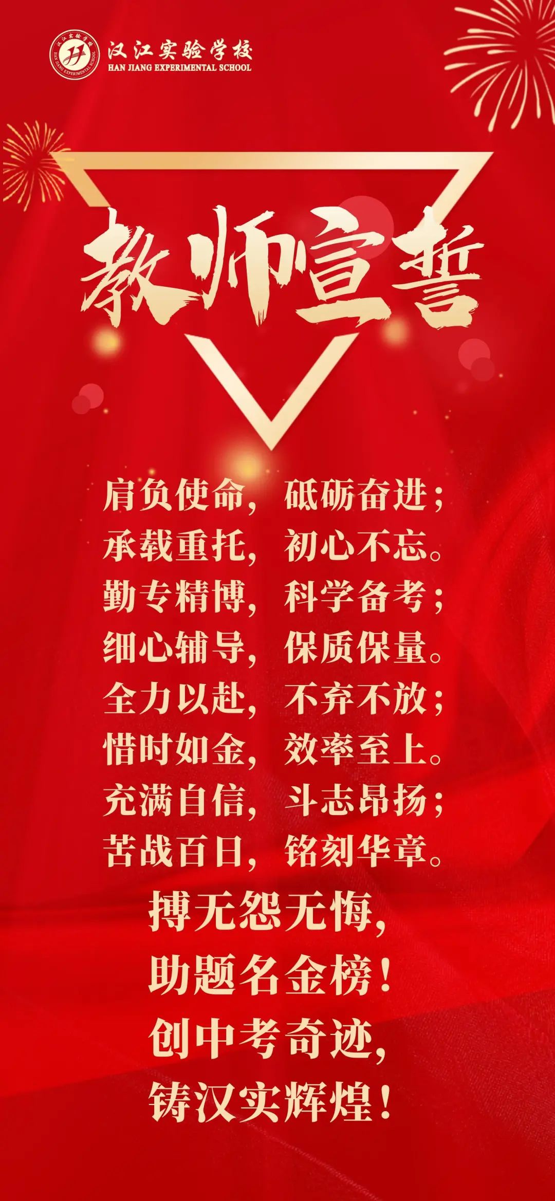 不负少年凌云志,自许人间第一流。决战中考的号角响彻耳边,壮阔的画卷尽情铺展,六月的收获指日可待!汉江实验学校2023届九年级学子必将不负韶华,用勤奋和拼搏为青春做注脚,用自信和勇毅为梦想架桥,乘风破浪展雄才,金榜题名绽笑颜。预祝汉江实验学校2023年中考再创佳绩,赓续华丽篇章!