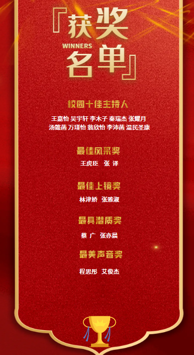 在自我介绍环节,选手们自信大方的表达,字里行间充分展现自己对播音主持的热爱,给现场观众留下了深刻的印象;讲故事环节中,选手们富有感染力的神态、动作和语言表达一次次打动了在场的评委和观众,博得了在场师生的阵阵掌声;随机题目环节,选手们从容不迫、舌灿莲花,展现了自身扎实的主持功底和稳健的台风;在才艺展示环节,唱歌、跳舞、朗诵、钢琴等纷纷上演,为我们带来了一场视听盛宴。