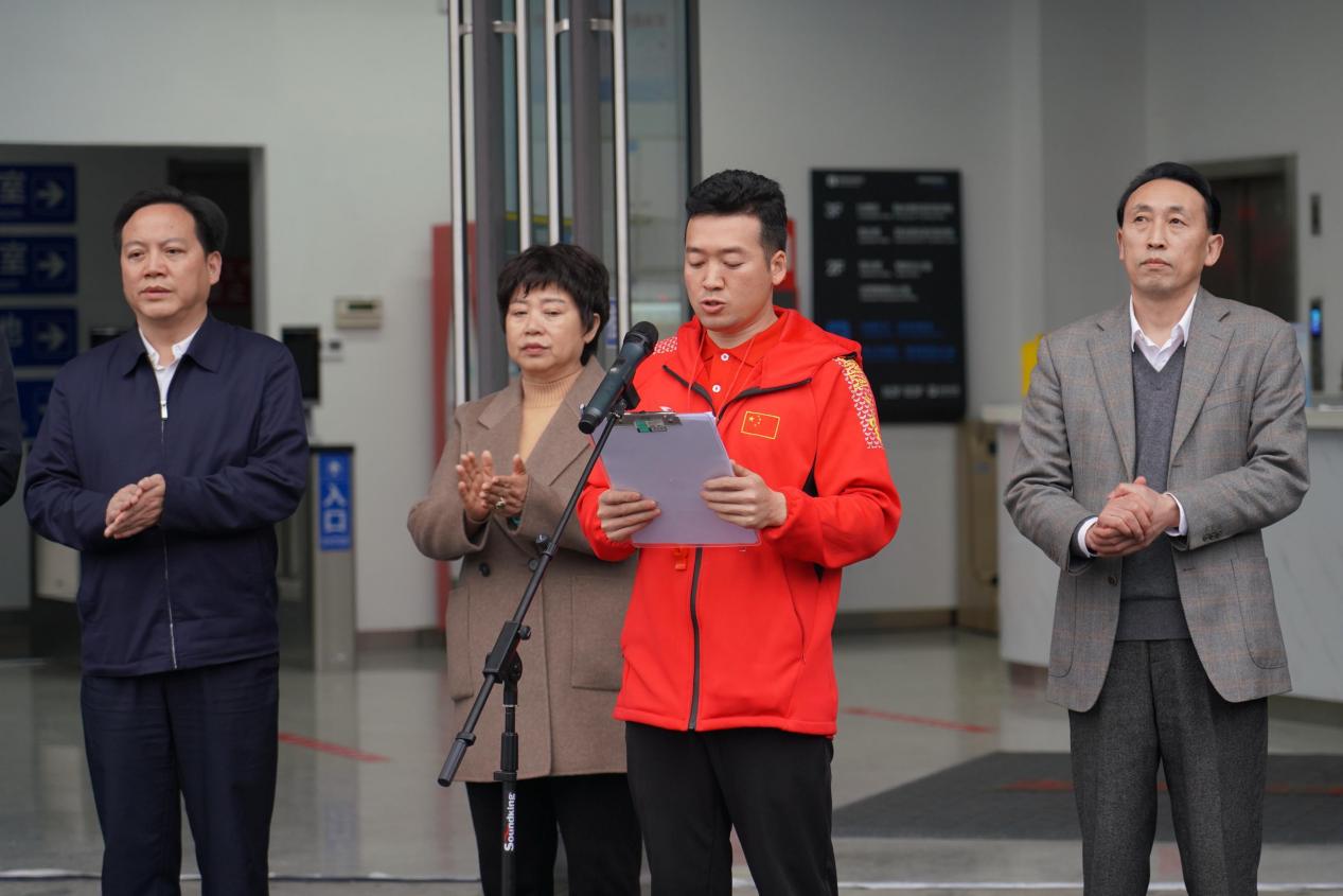 活动伊始,我校校长朱仕竹代表学校向市文旅局一直以来的关心和支持表示衷心感谢,并回顾介绍了我校与市体育中心体教融合的开展情况。自2021年9月开始,我校与体育中心正式开展体教融合,为学生健康成长提供良好的平台,此次游泳课程的开设也将进一步有效推进体教融合。朱校长希望同学们把握机会,在充分保障安全的前提下享受游泳带来的乐趣,文明守纪、听从安排,圆满完成游泳课程。