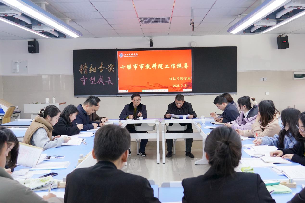 2023年3月21日,十堰市教科院初中室各学科专家莅临我校开展教学工作视导检查。汉江实验学校副董事长陈伟,校长朱仕竹及校委会相关领导陪同,各教研组长共同参与本次活动。